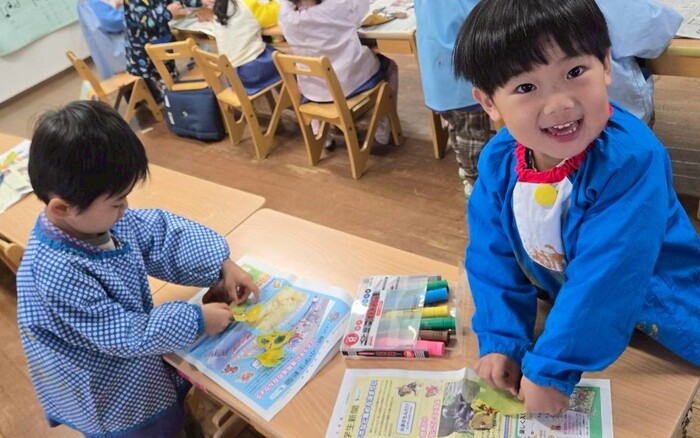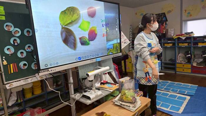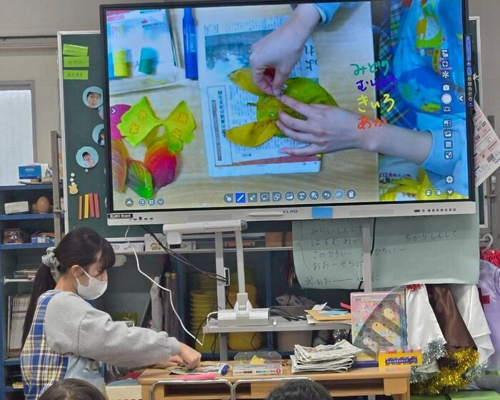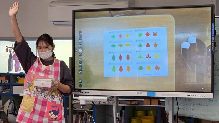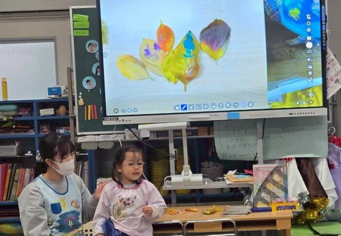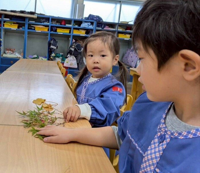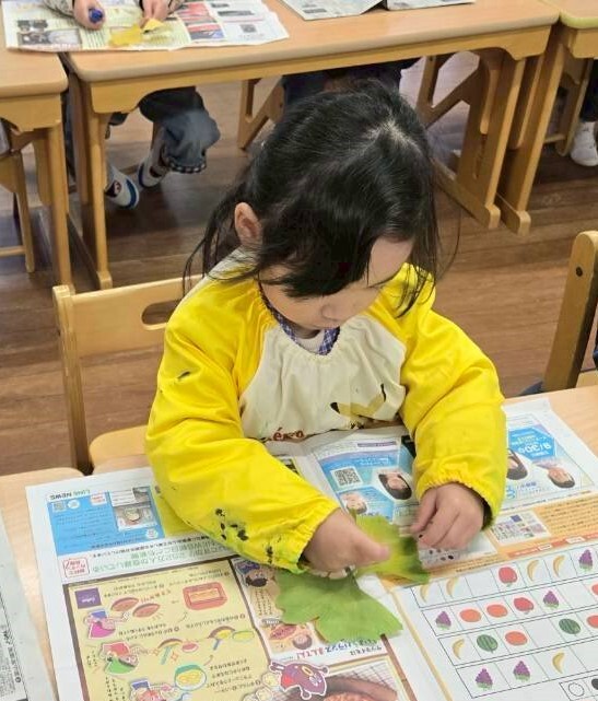 園庭に落ちていた色とりどりの落ち葉を拾ってきましたよ♪