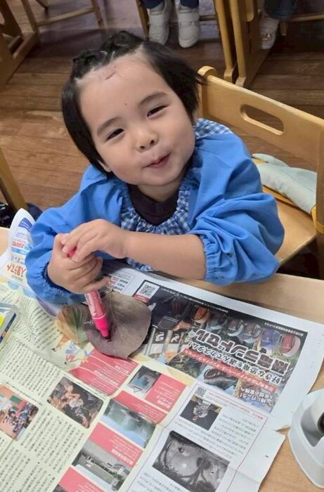 今日は、落ち葉にお絵かきしたりしてみましょうね♪