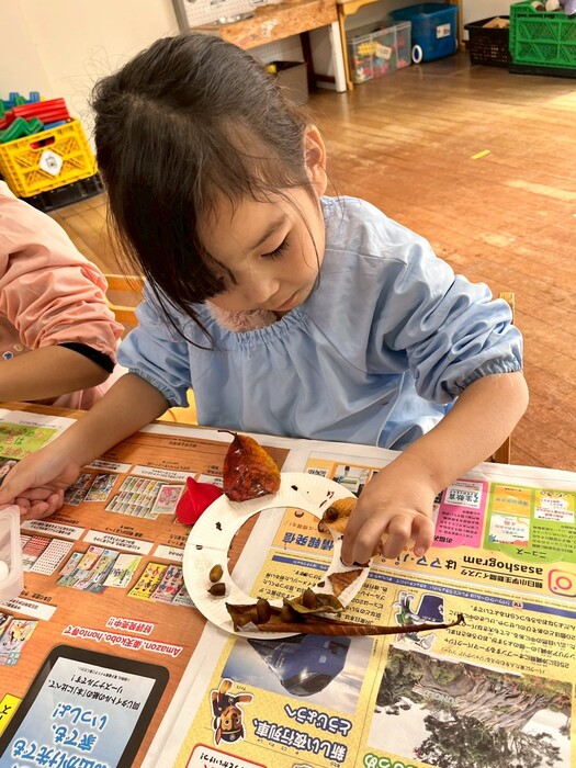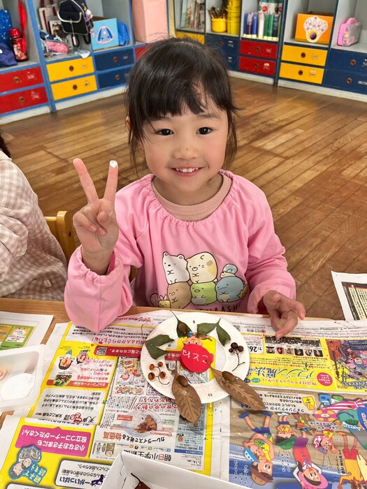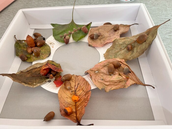 前回の『ドングリ』と、この『落ち葉』を使ってリースを作ろうね♪