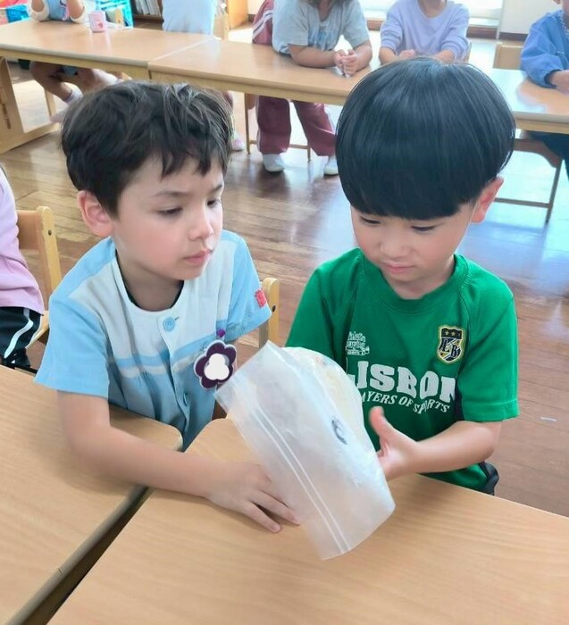 ふむふむ、じっくり観察✨ 触った感じはどうかな?