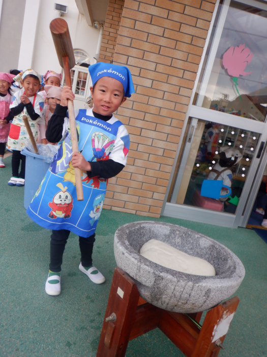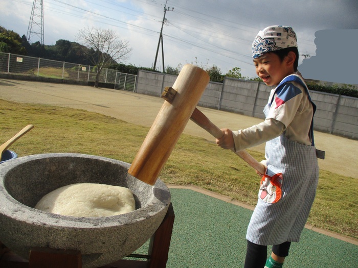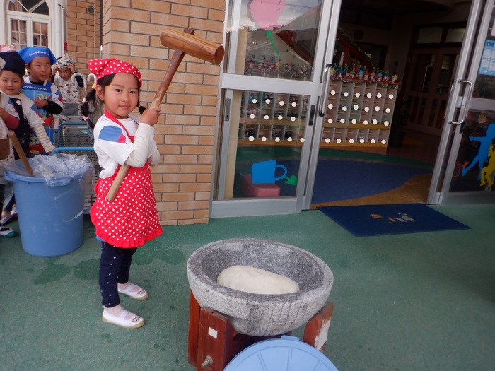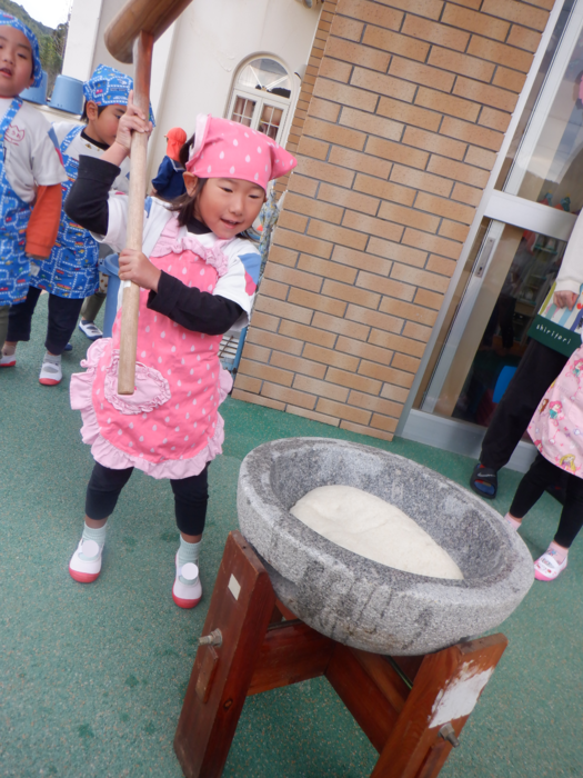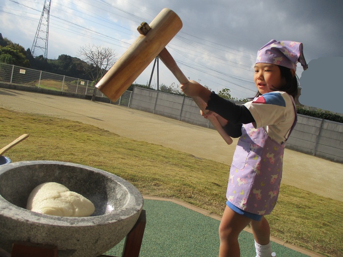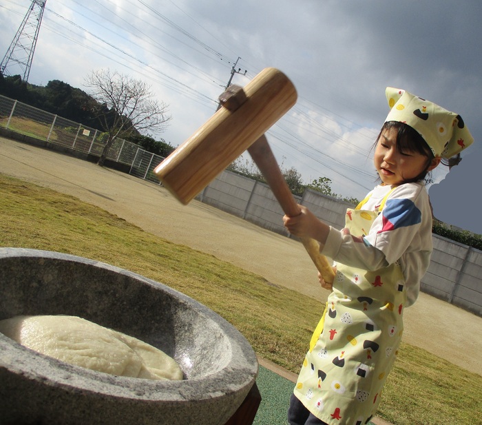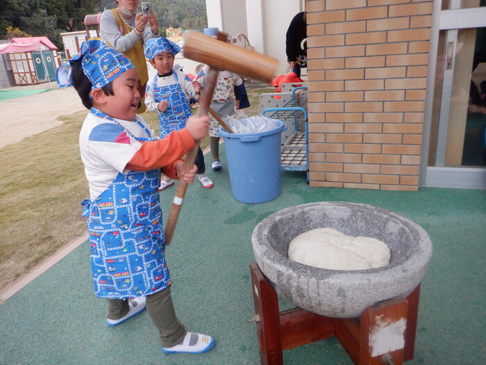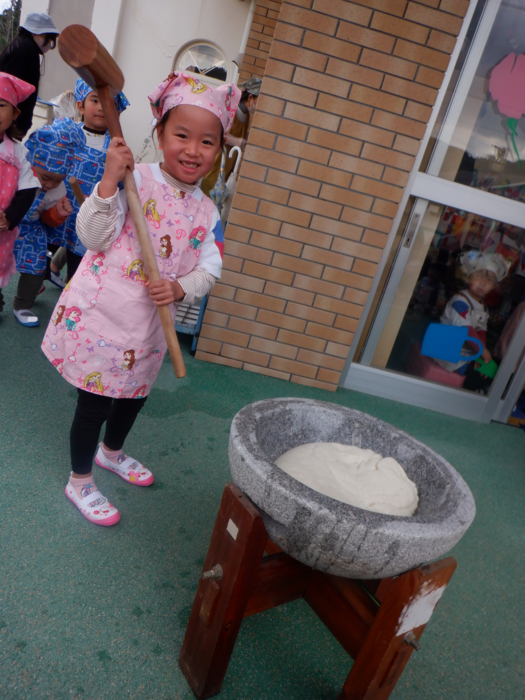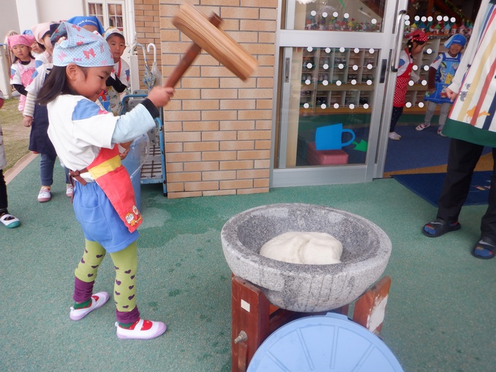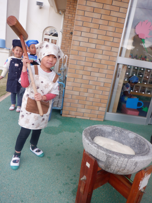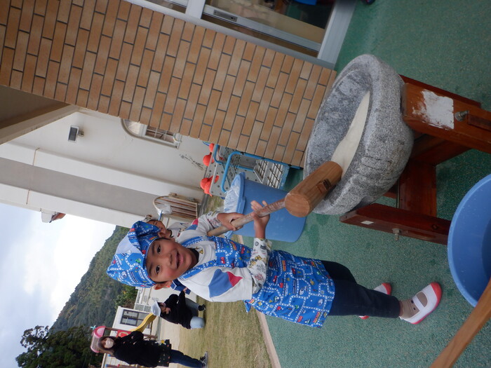 杵で餅つきを頑張りました!!