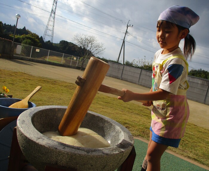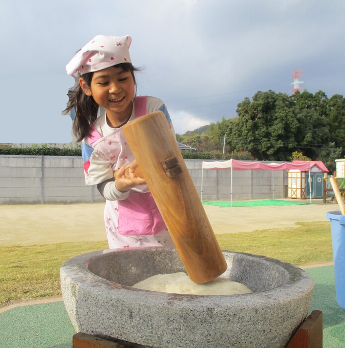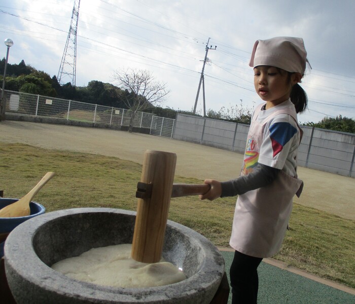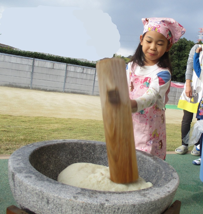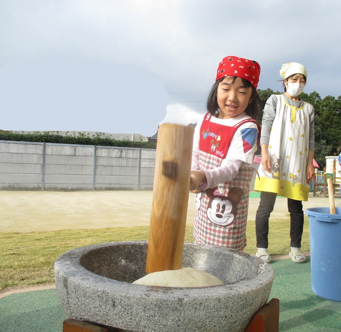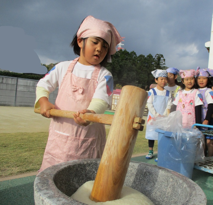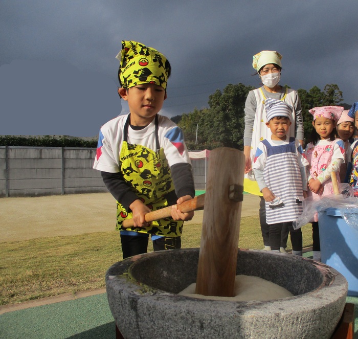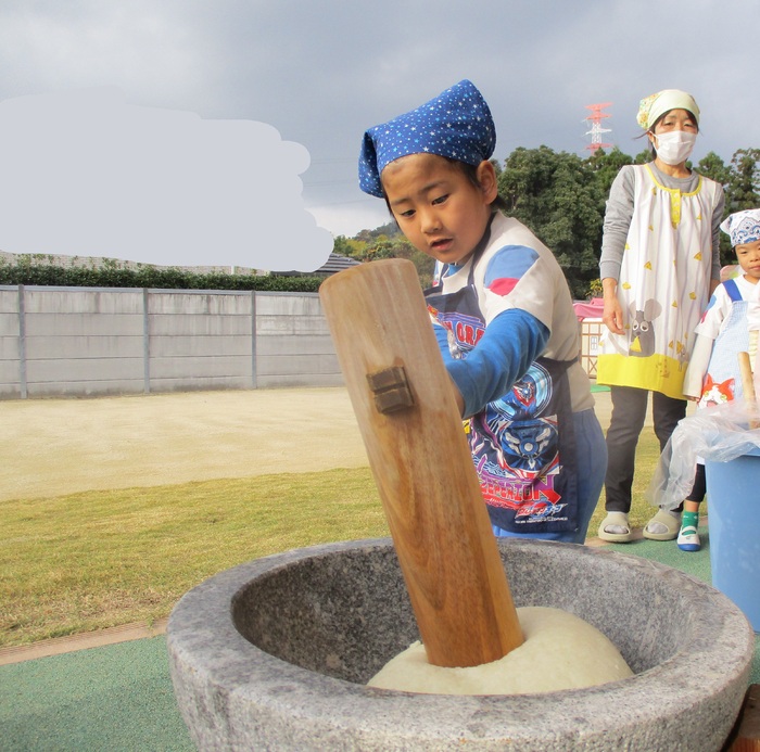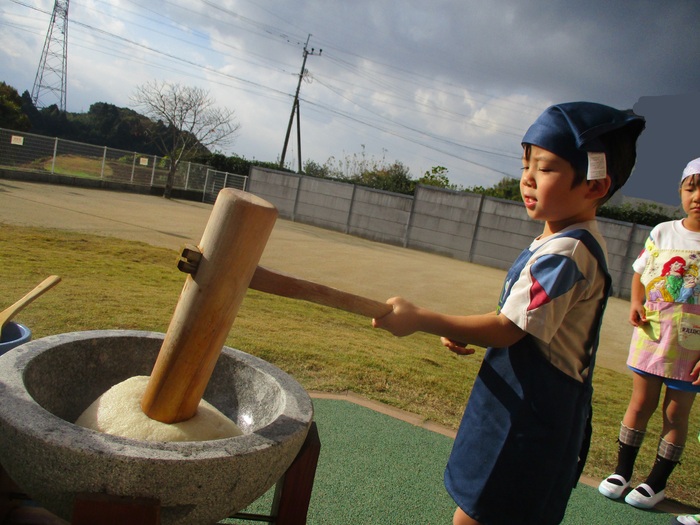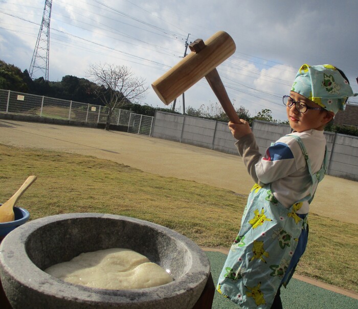 杵で餅つきを頑張りました!!