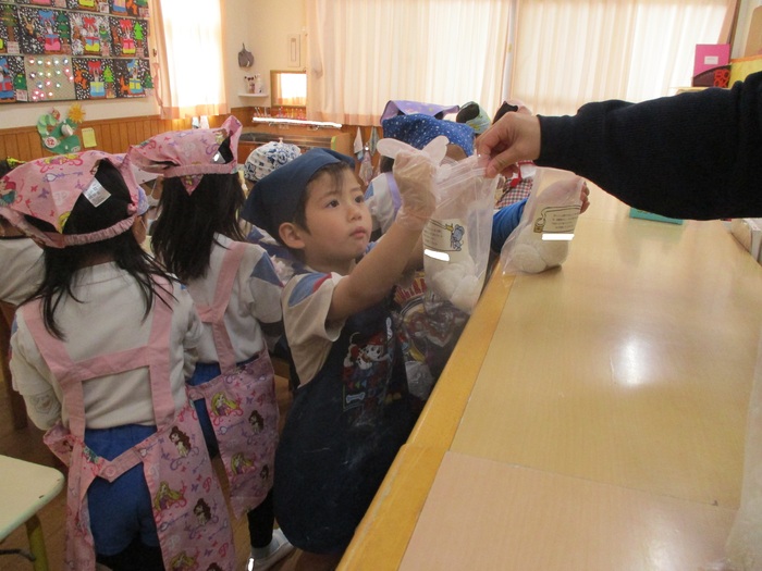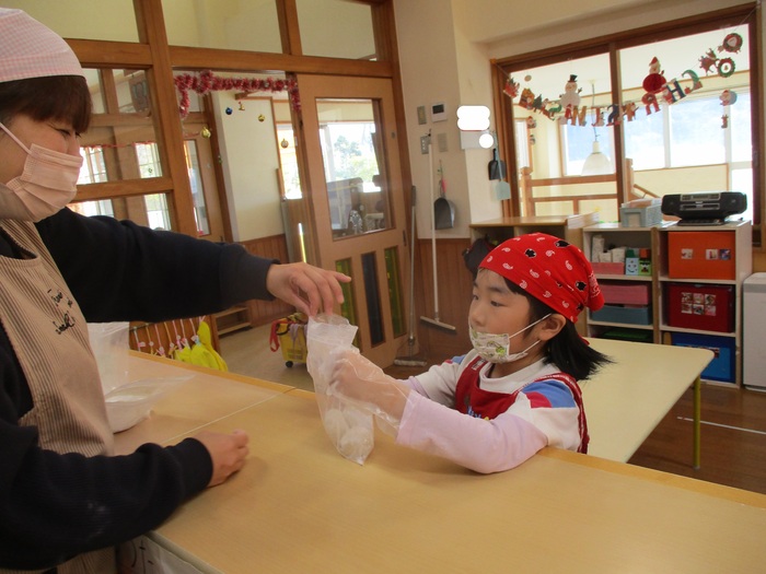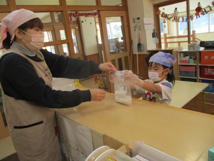 自分で丸めた餅を袋に入れて持ち帰りました!