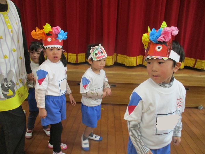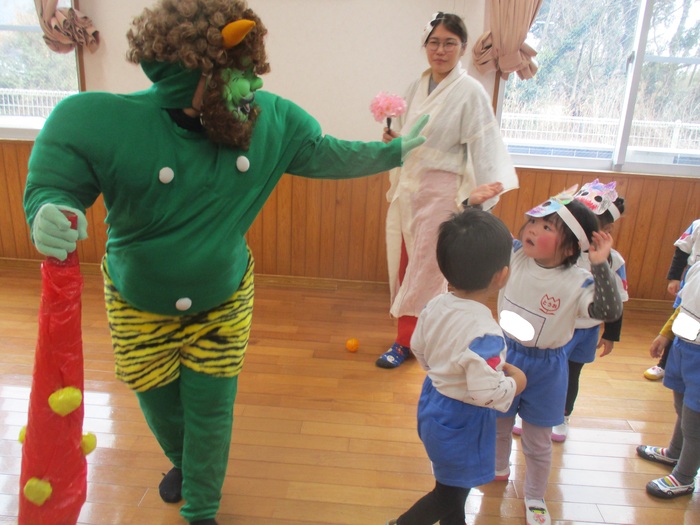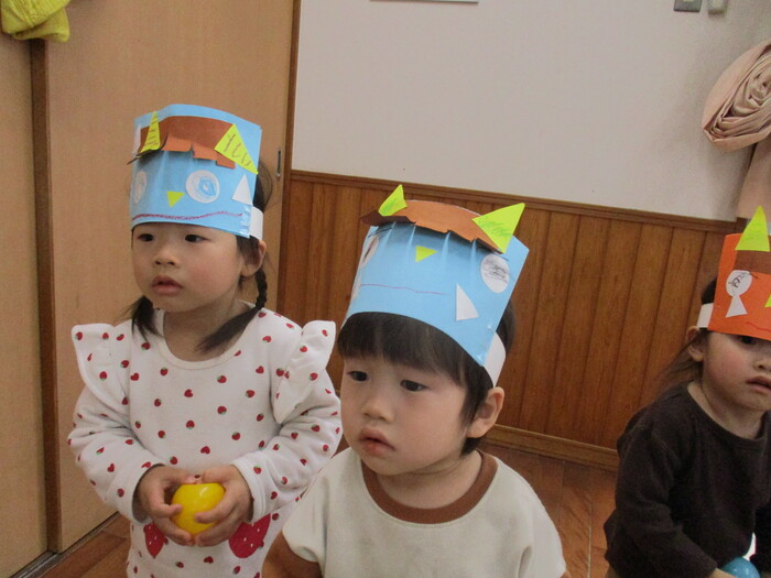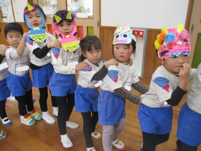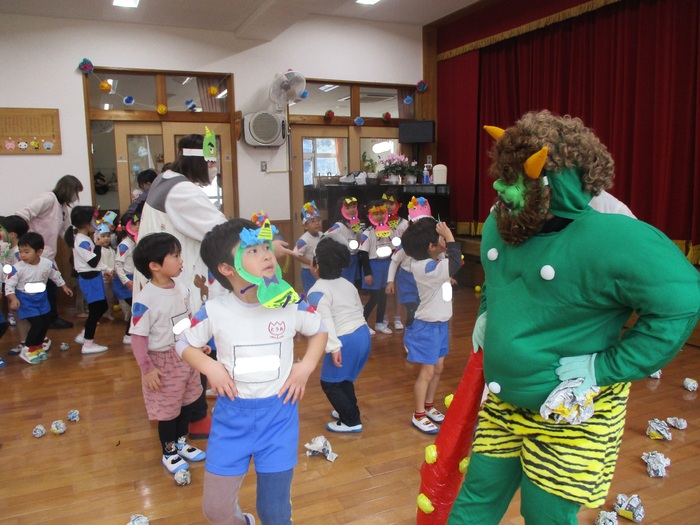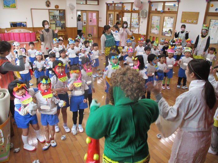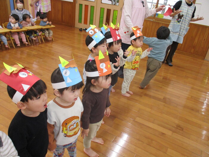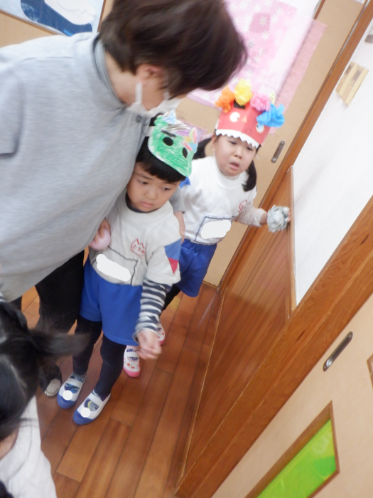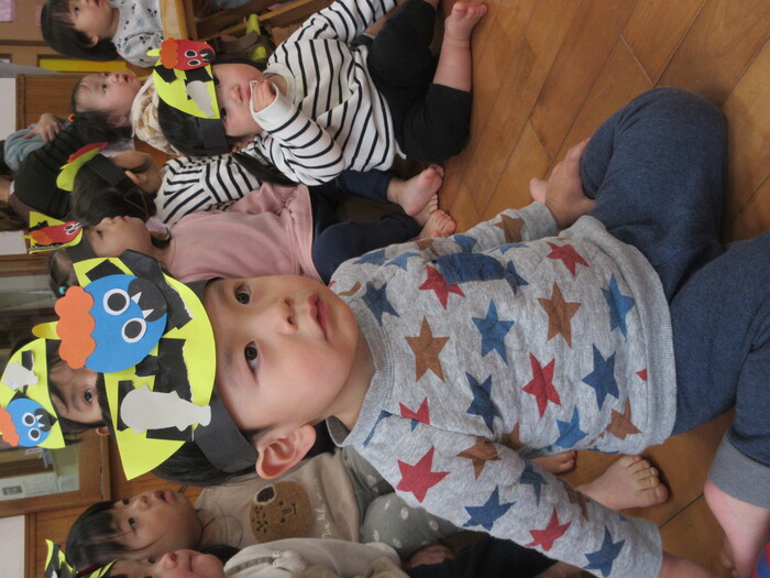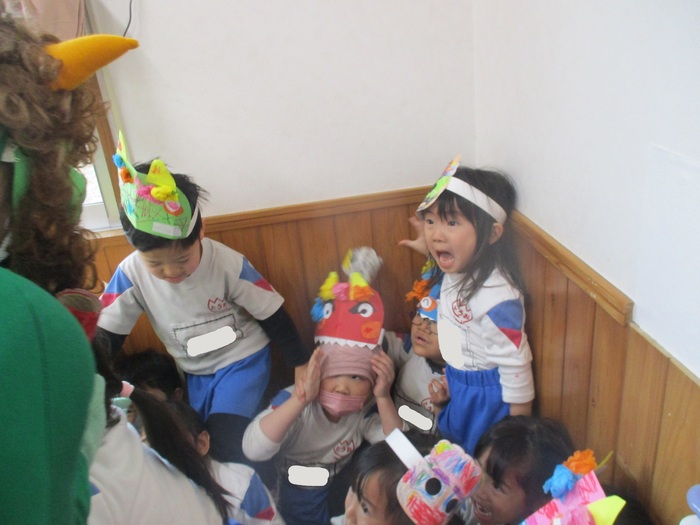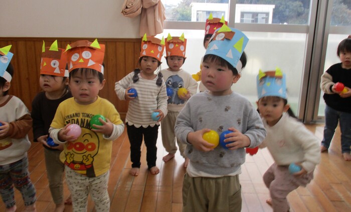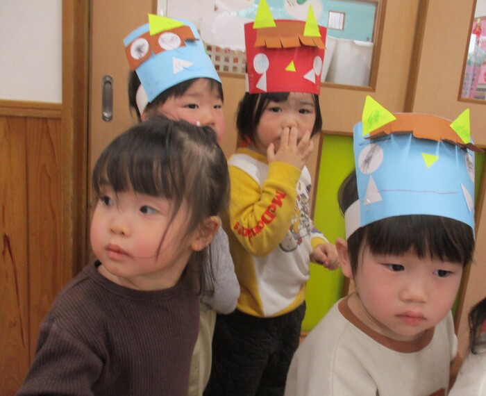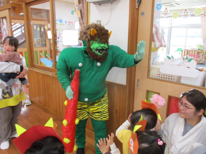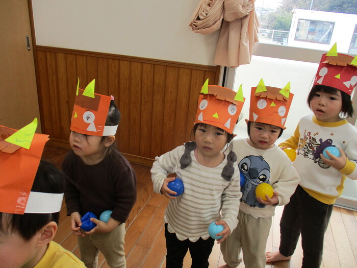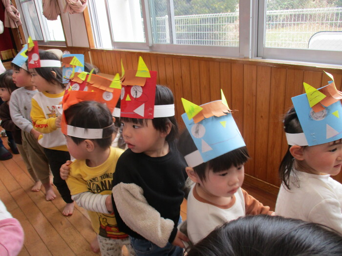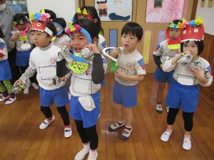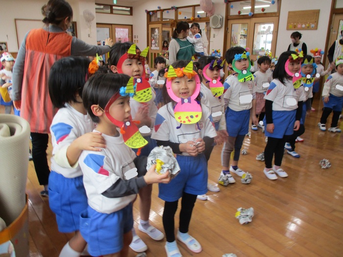節分の集会では、歌を歌ったり紙芝居を見たりしました☆