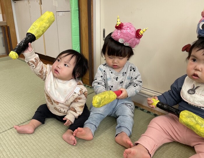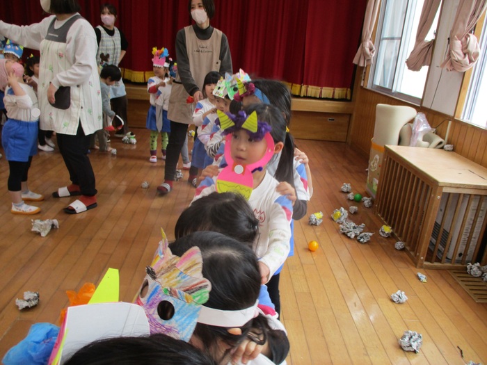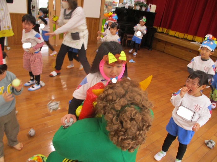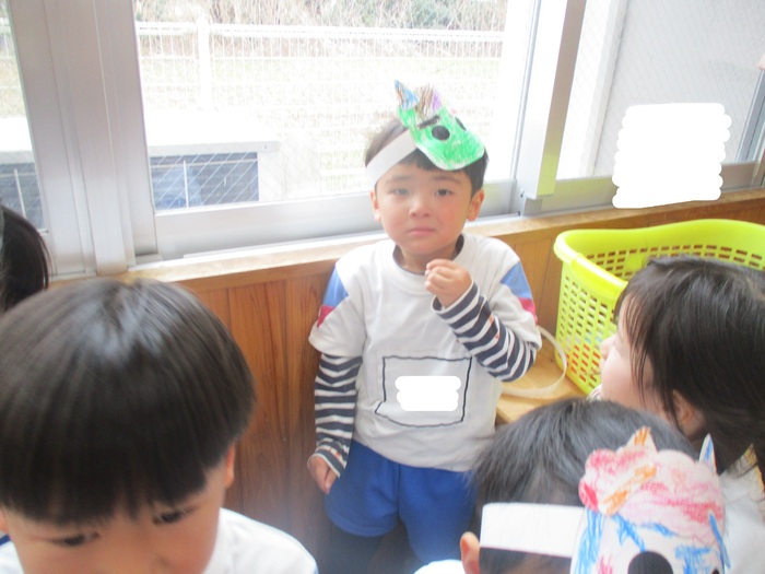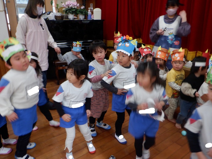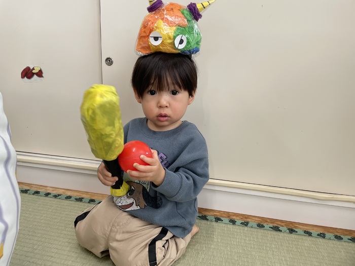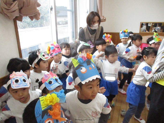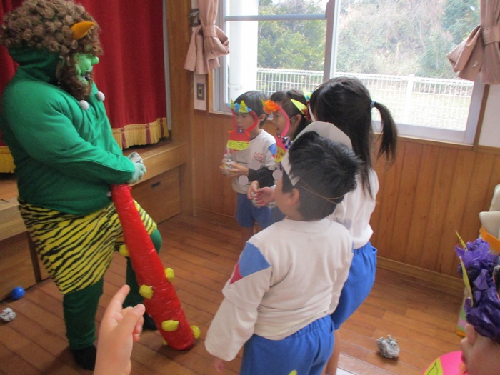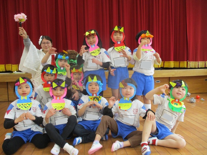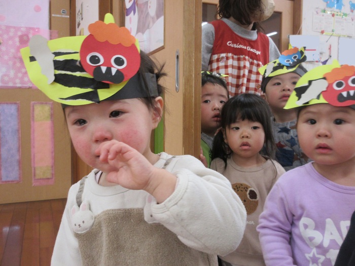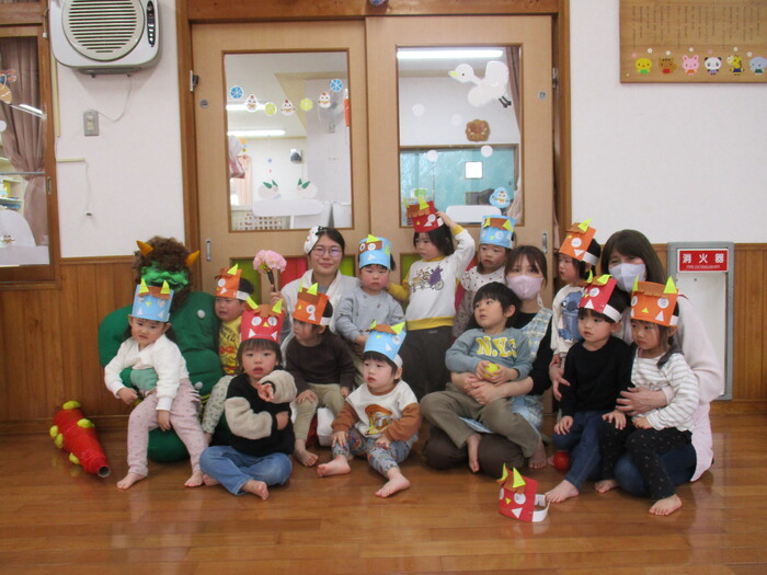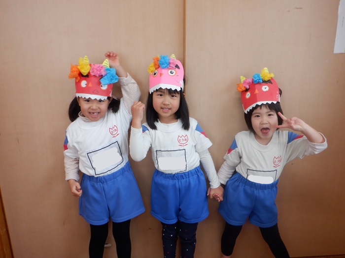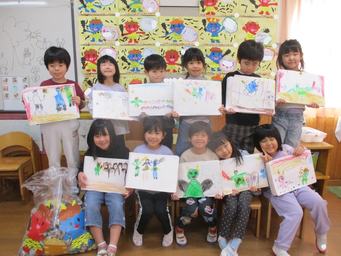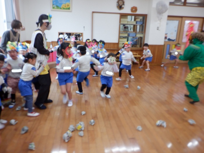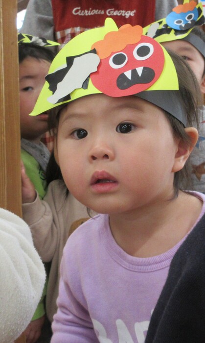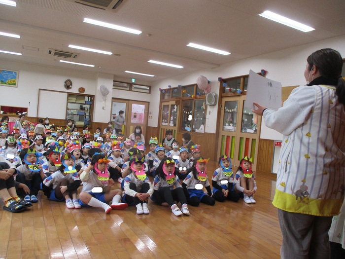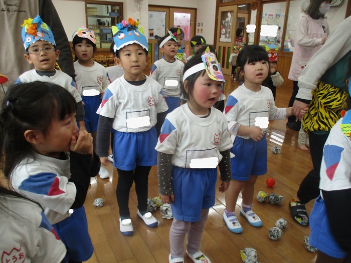 節分の集会では、歌を歌ったり紙芝居を見たりしました☆