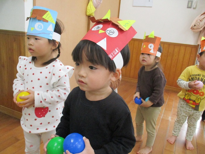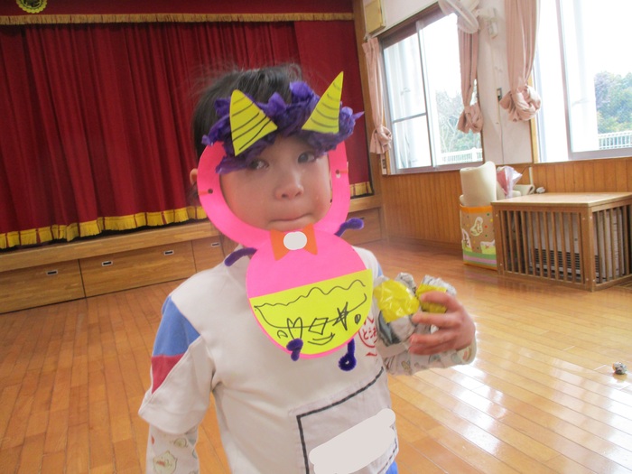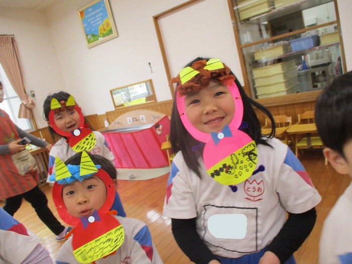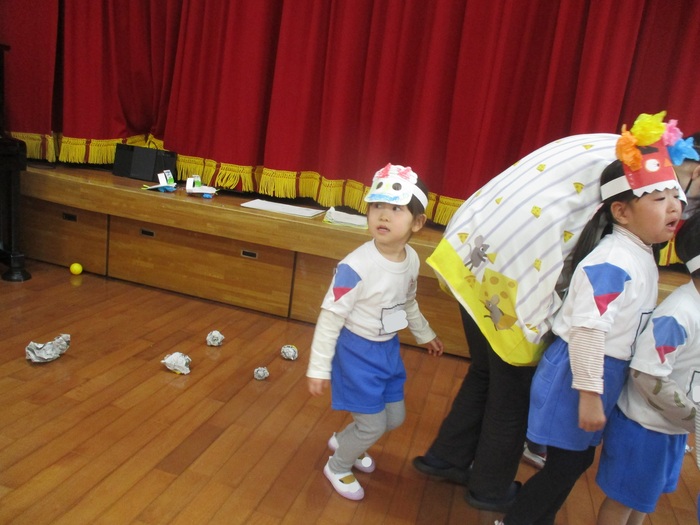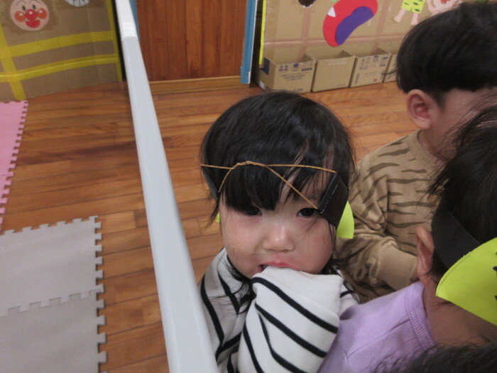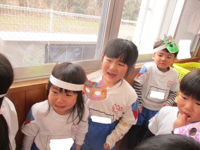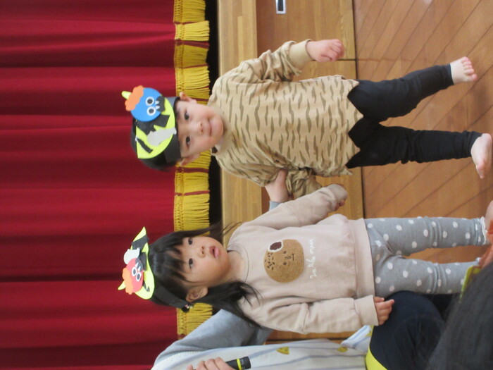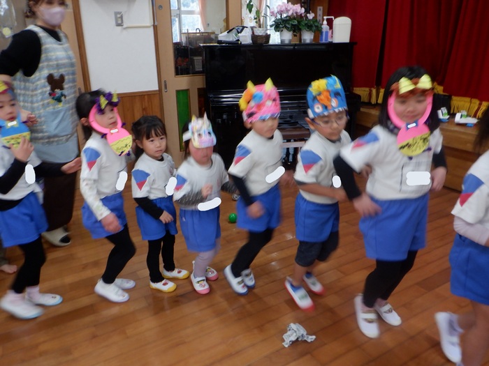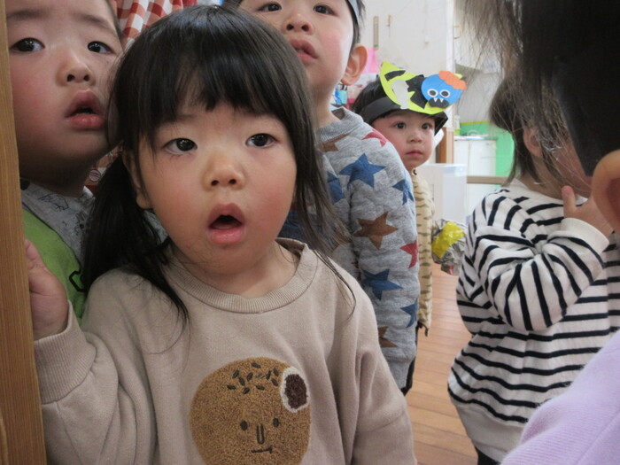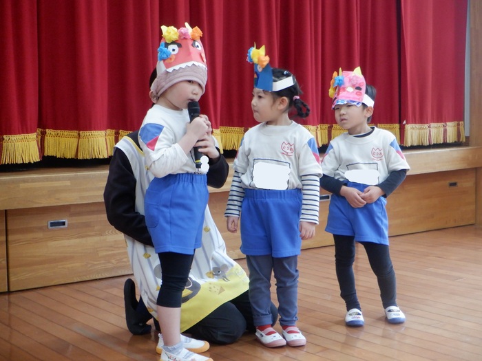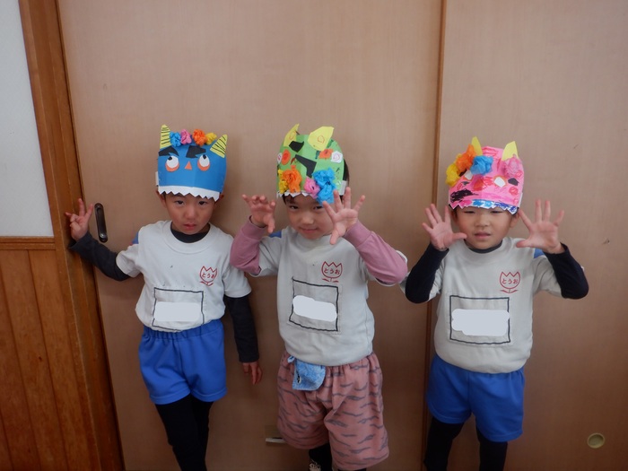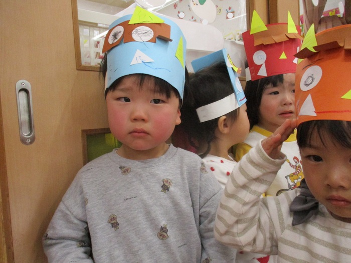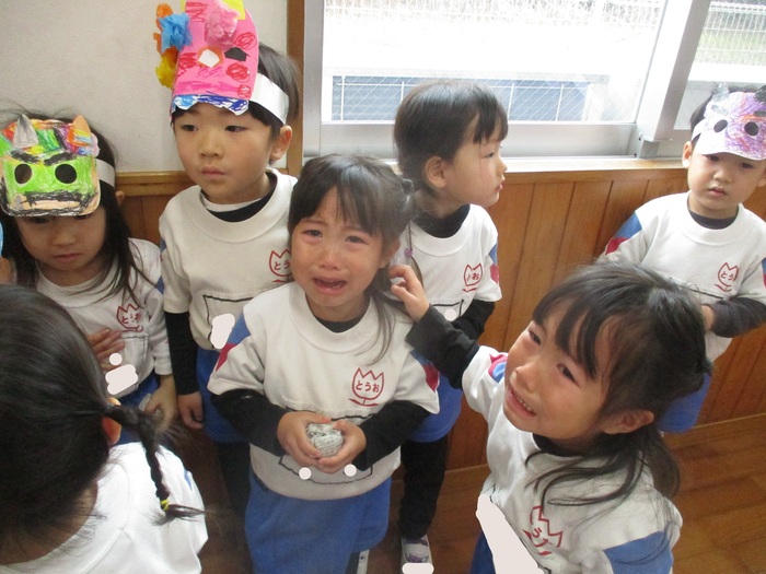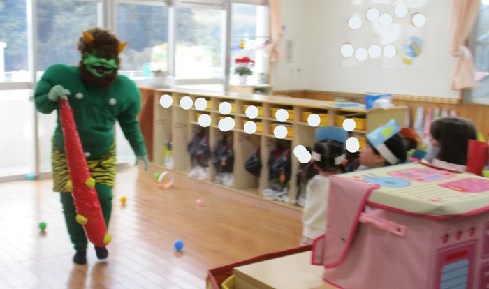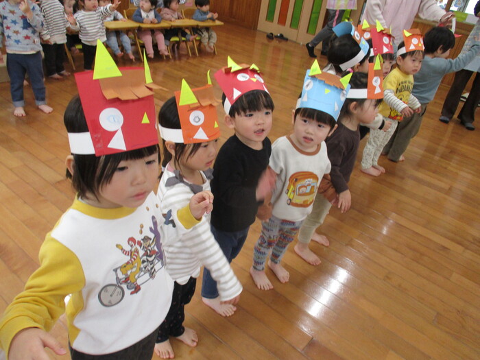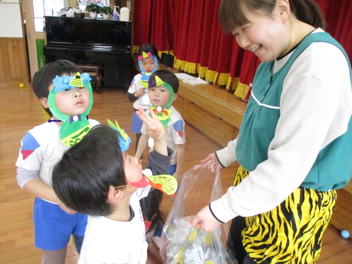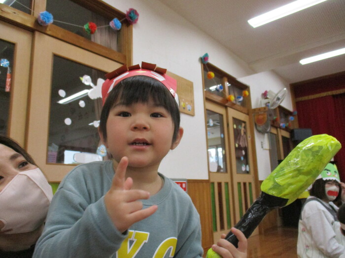 節分の集会では、歌を歌ったり紙芝居を見たりしました☆