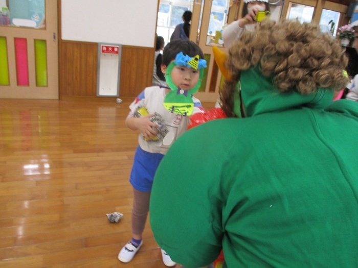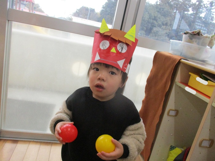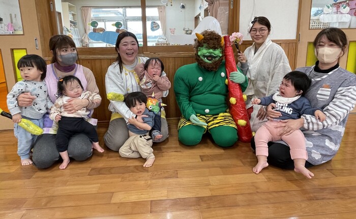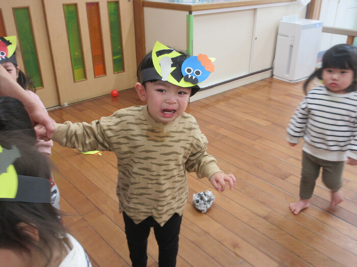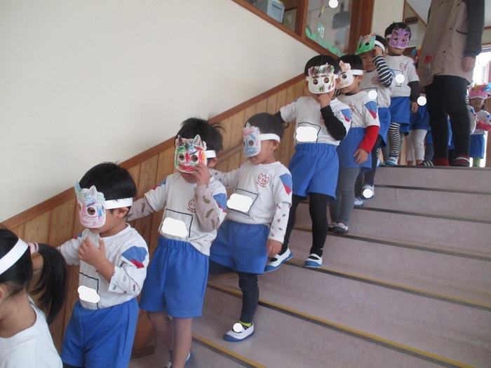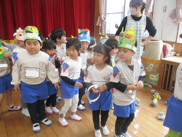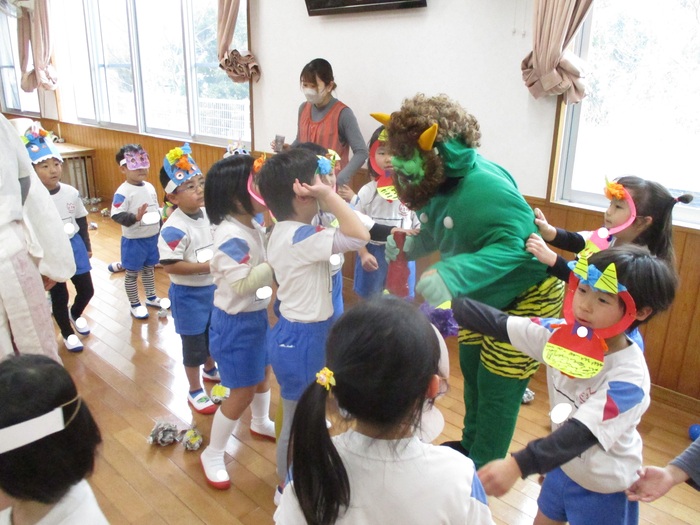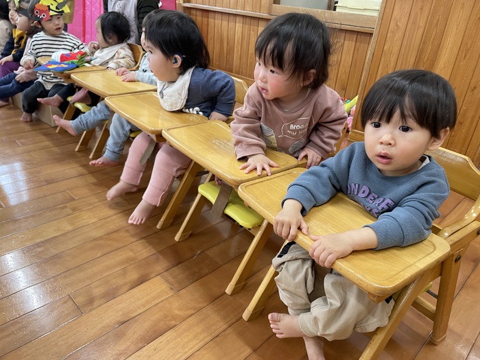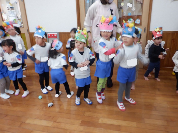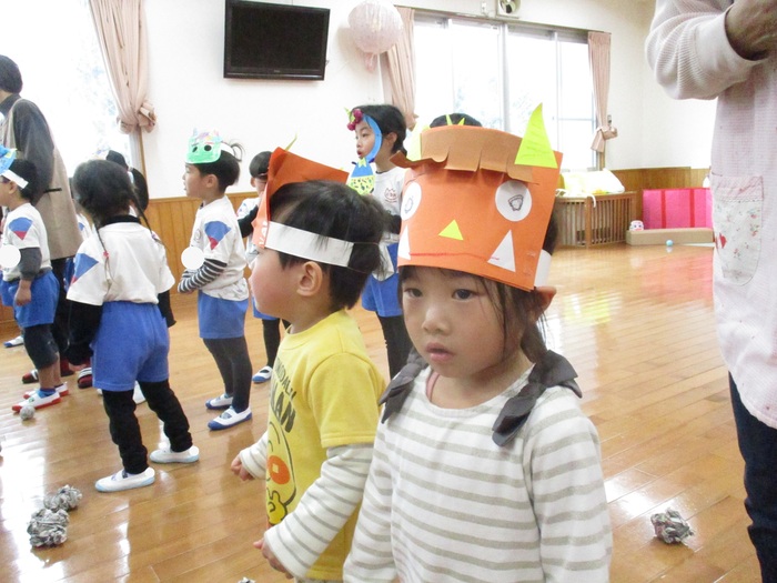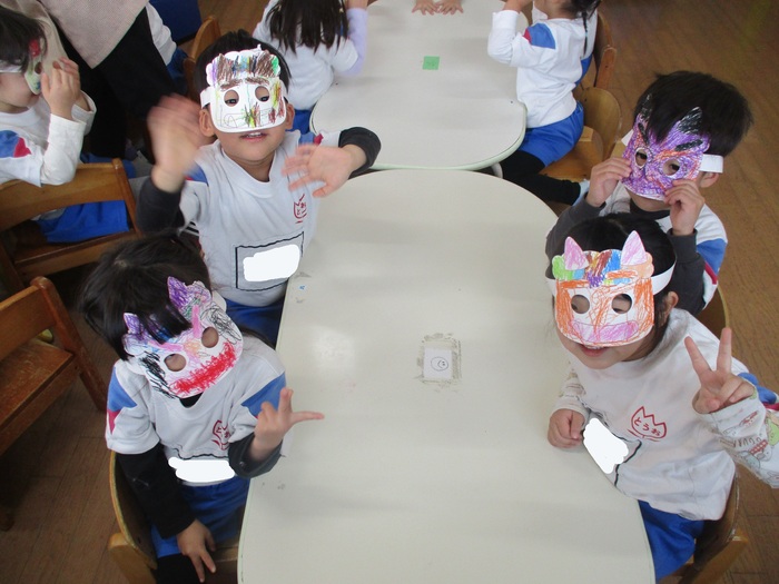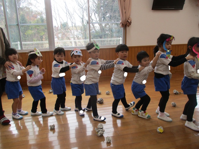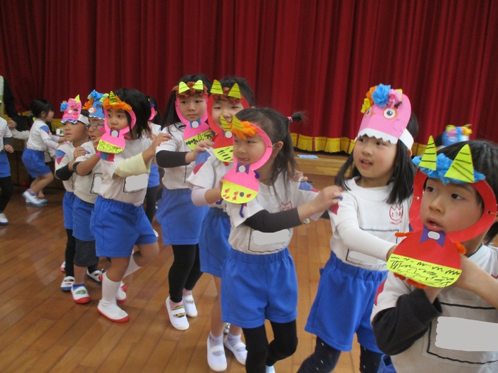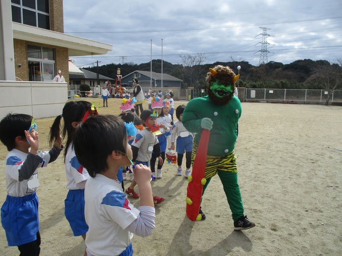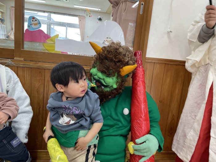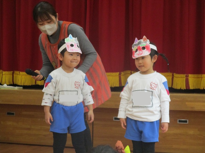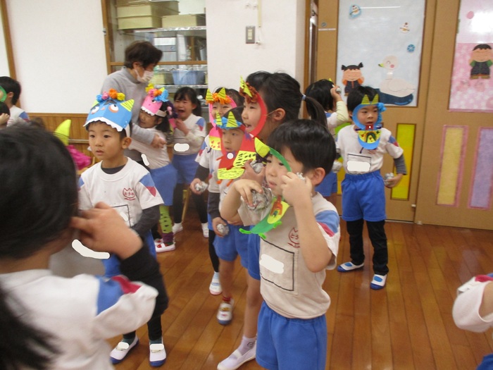 節分の集会では、歌を歌ったり紙芝居を見たりしました☆