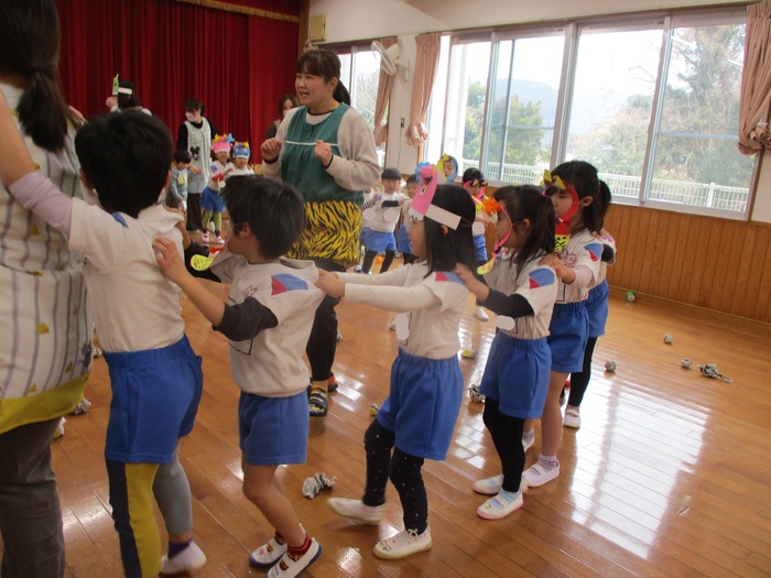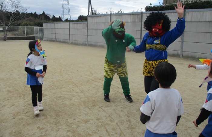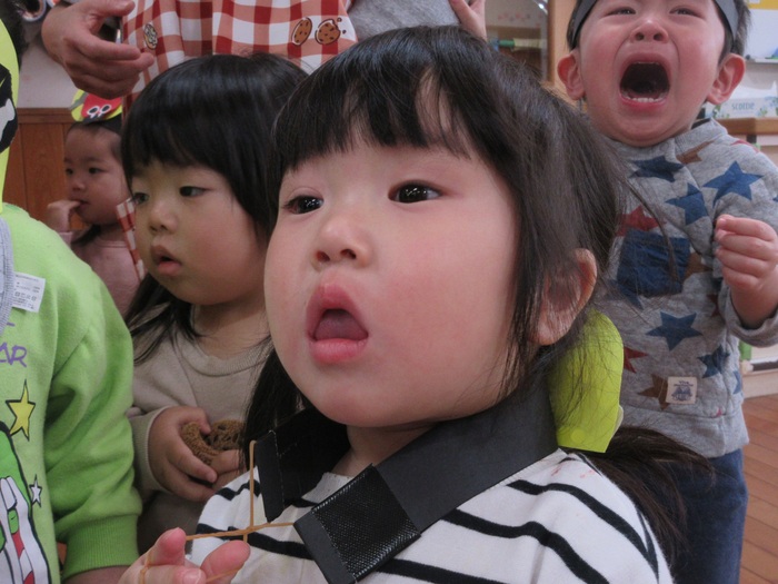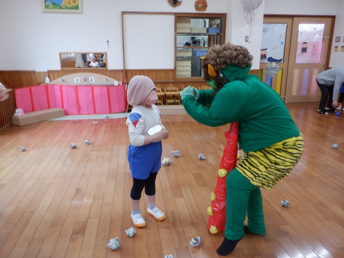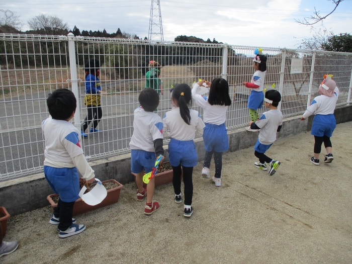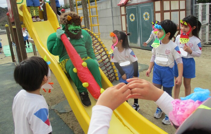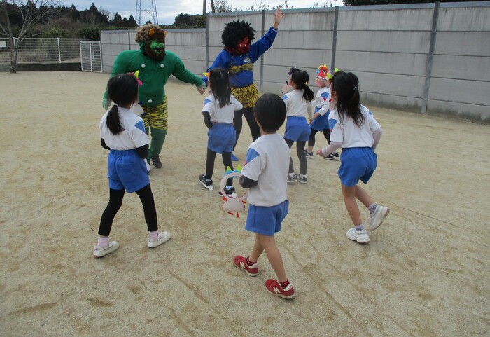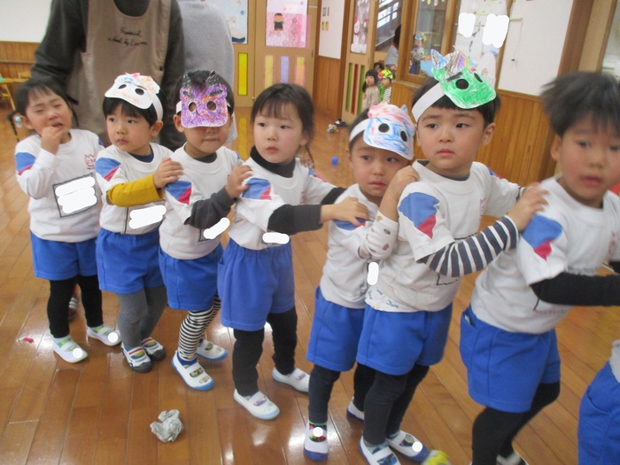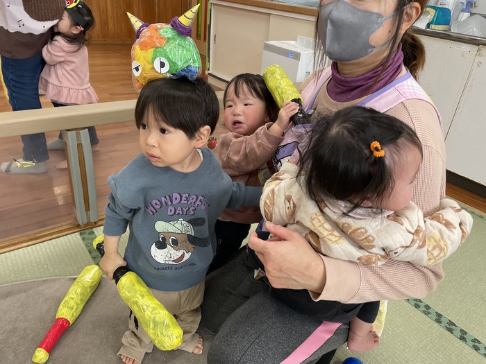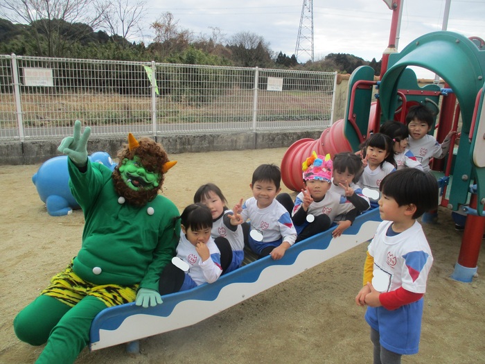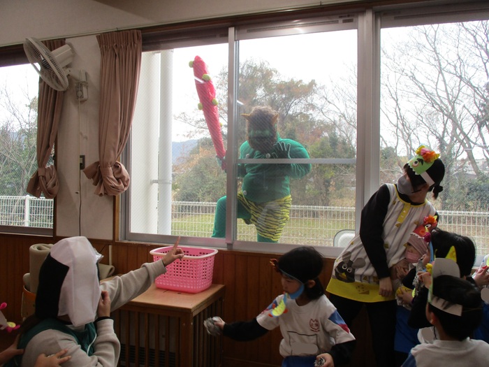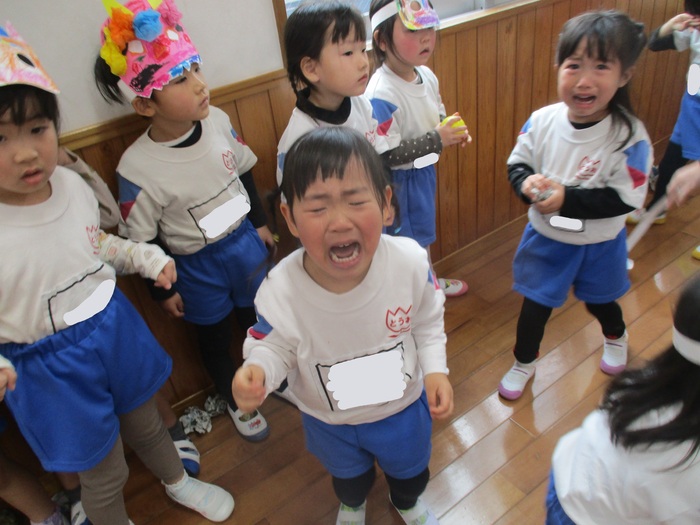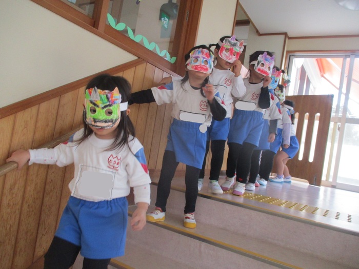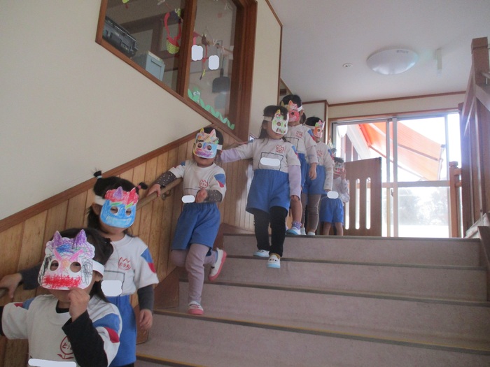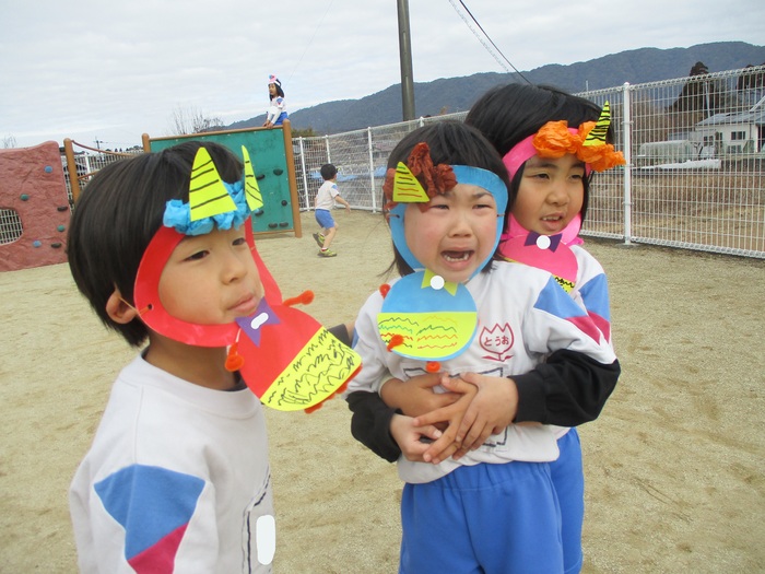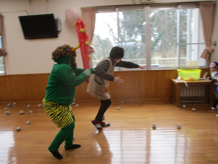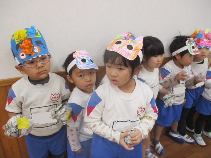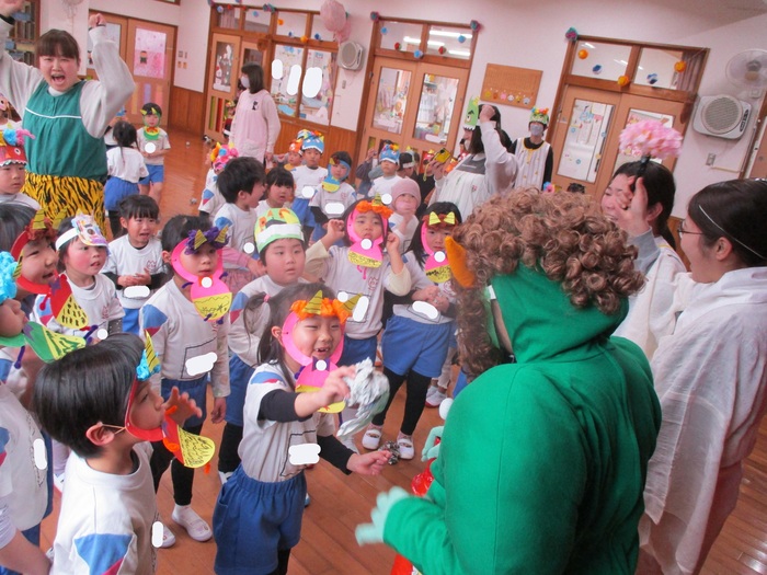 節分の集会では、歌を歌ったり紙芝居を見たりしました☆