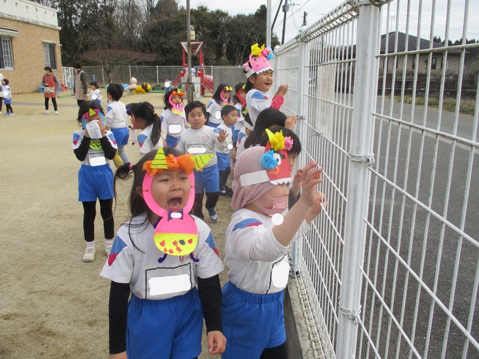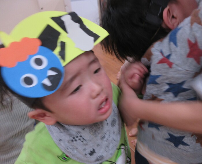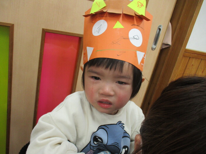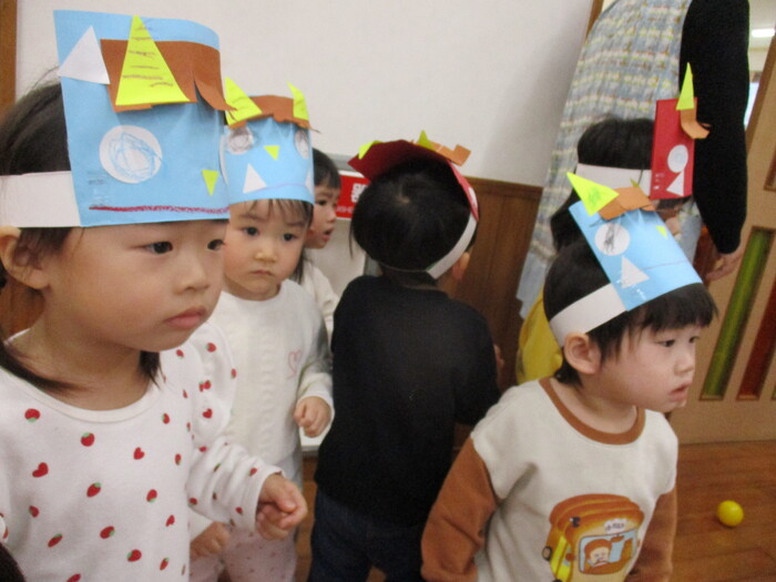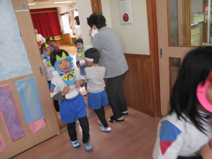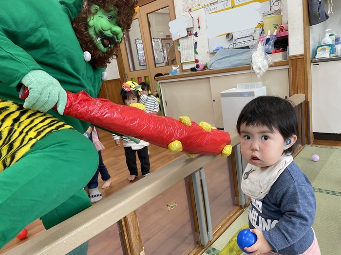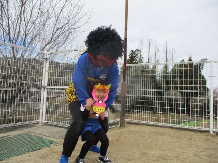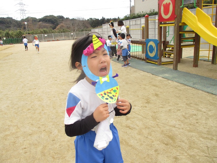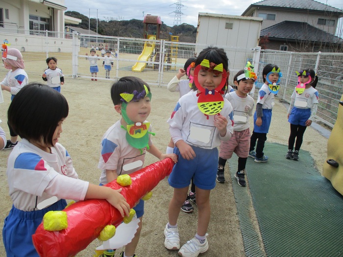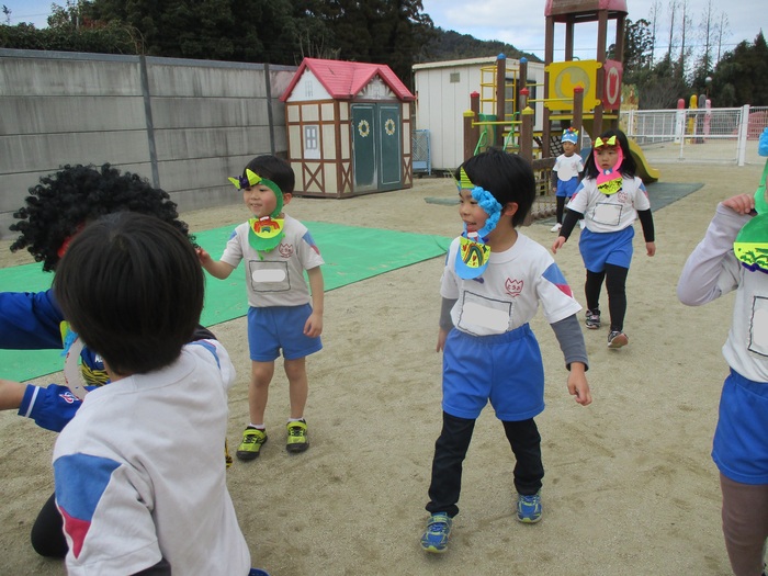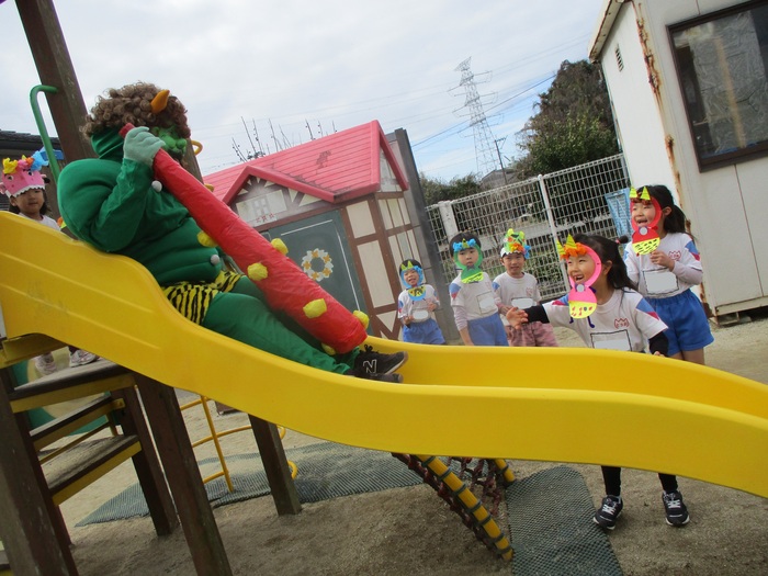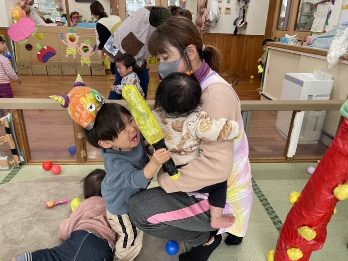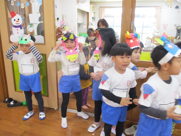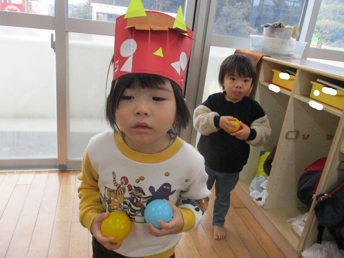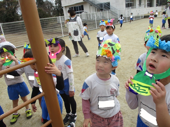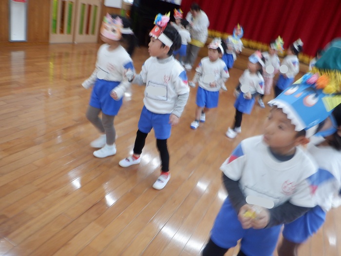 節分の集会では、歌を歌ったり紙芝居を見たりしました☆