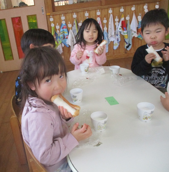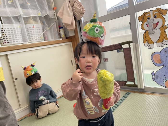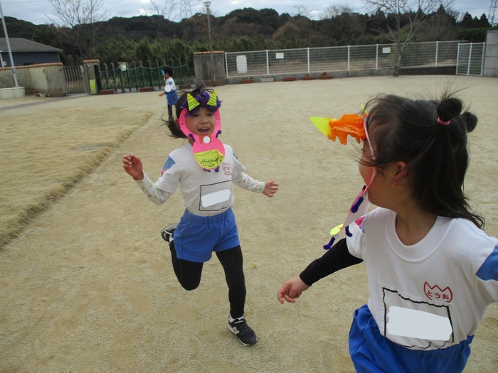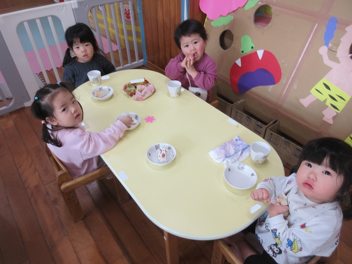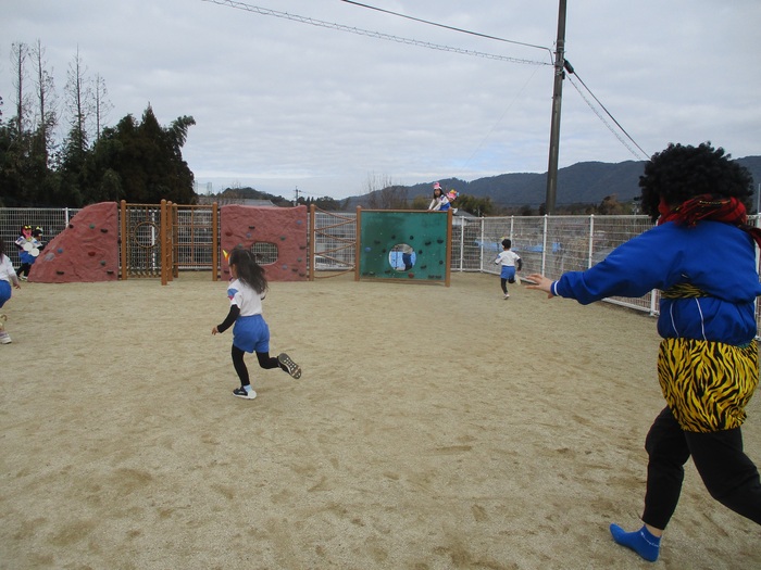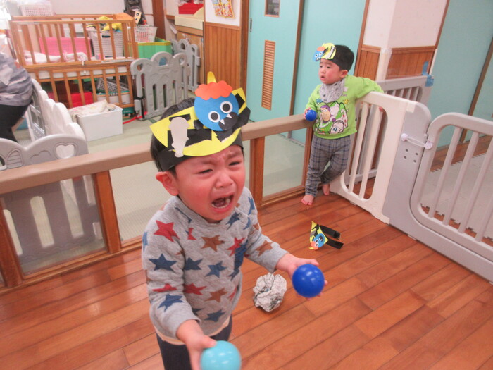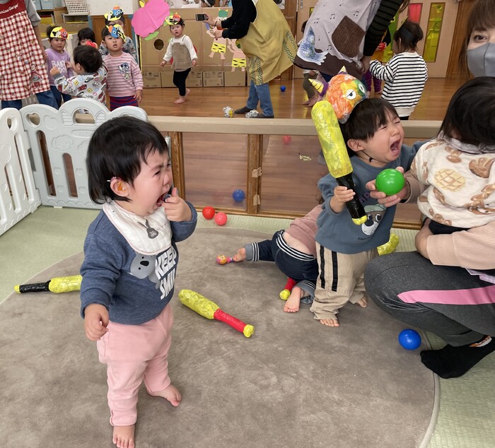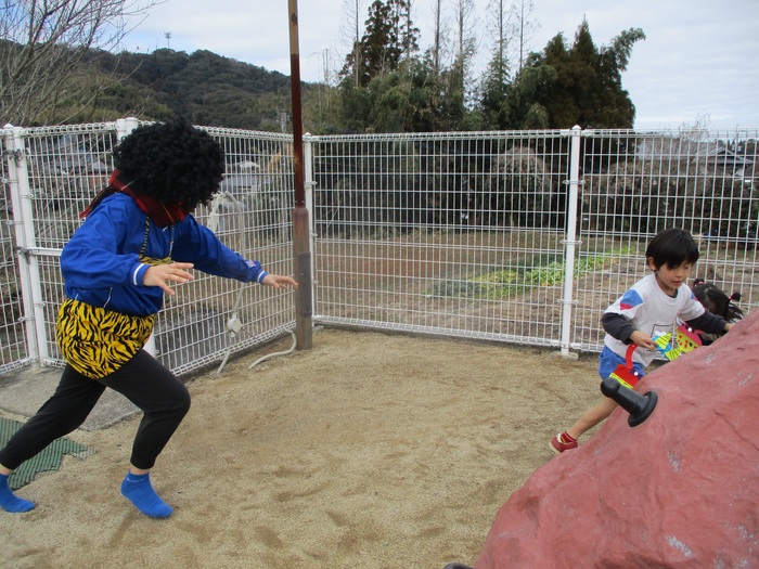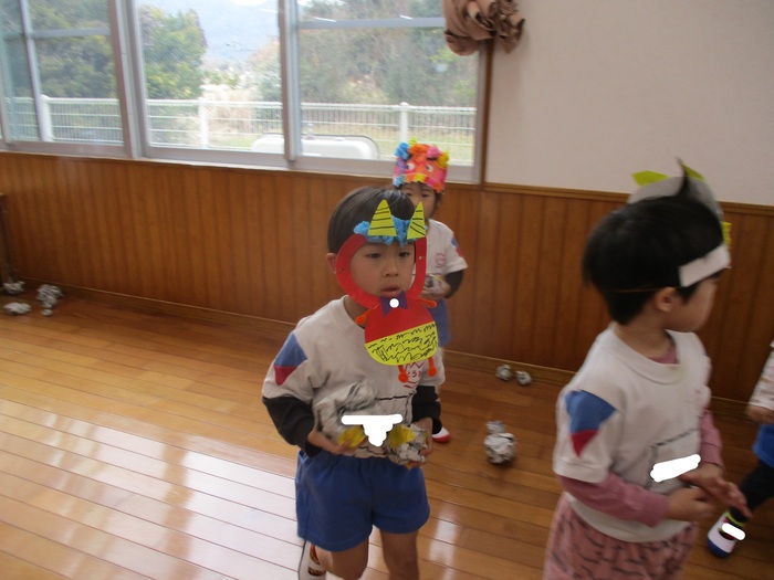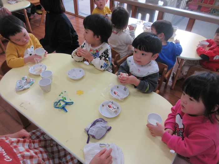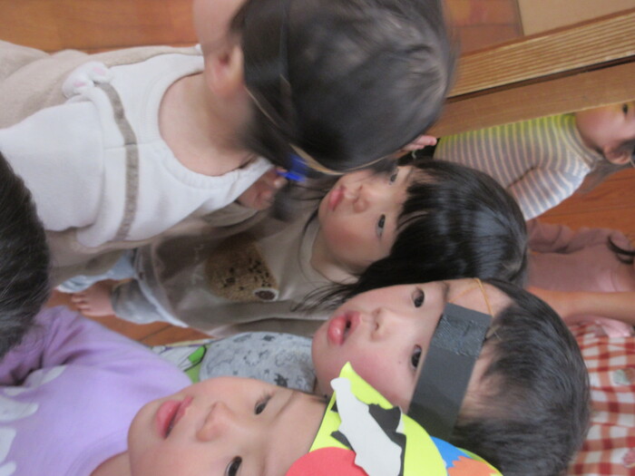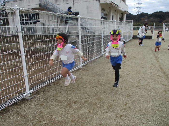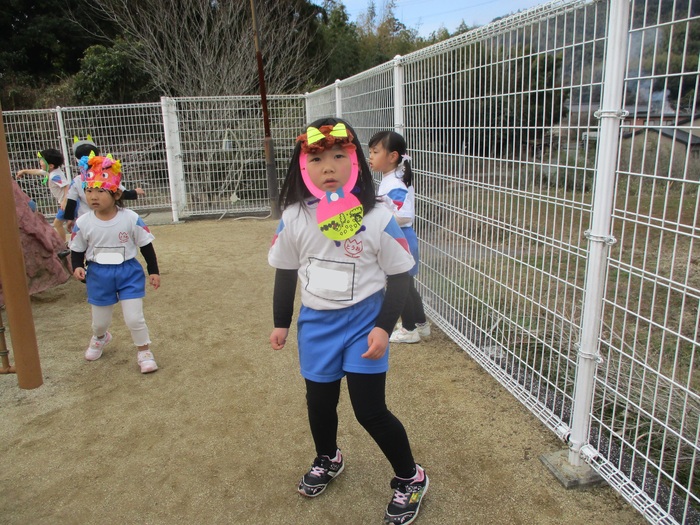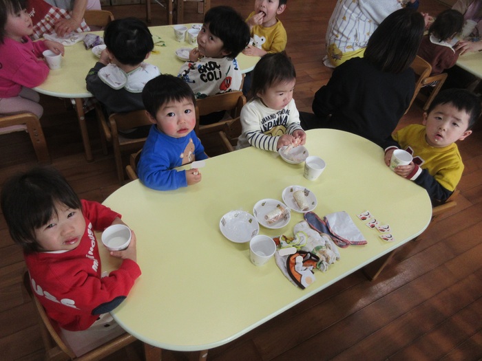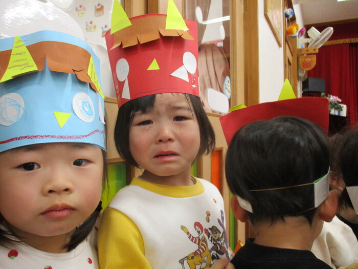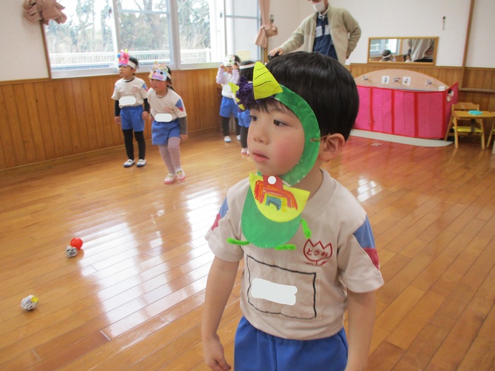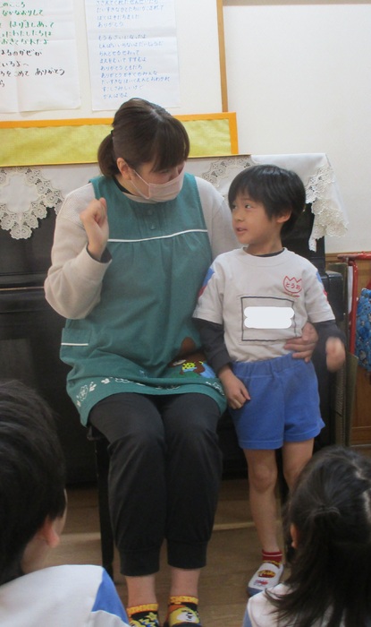 節分の集会では、歌を歌ったり紙芝居を見たりしました☆