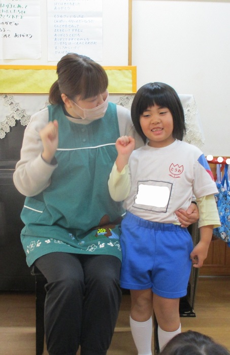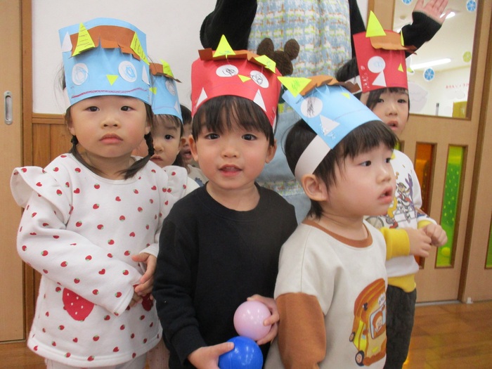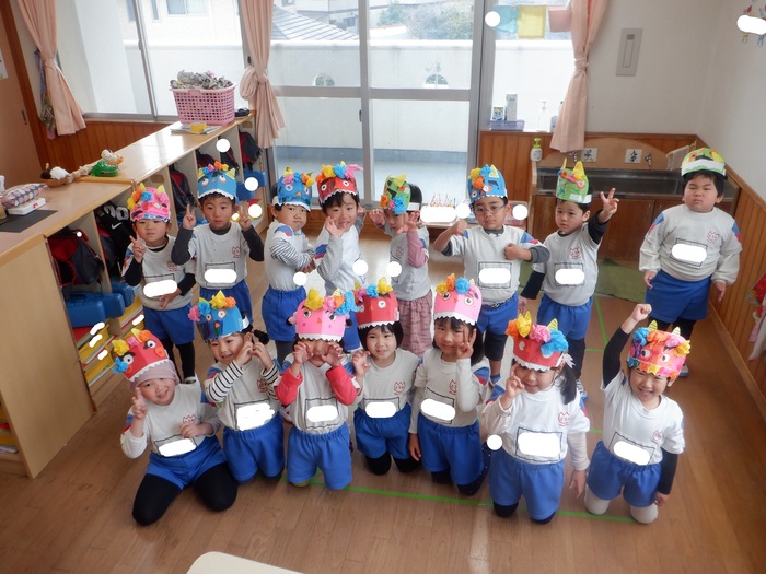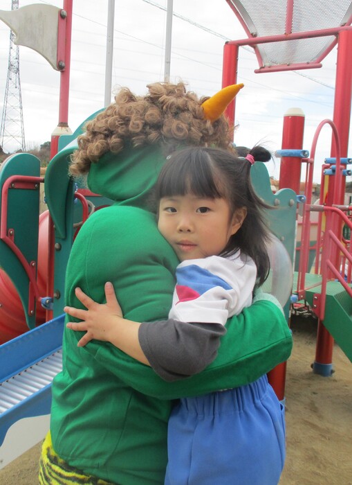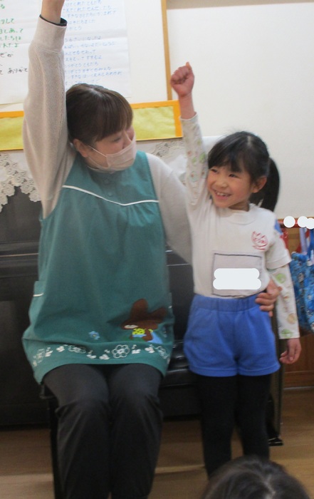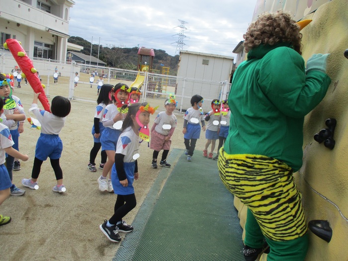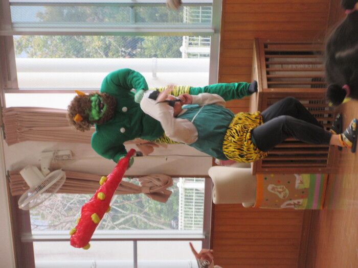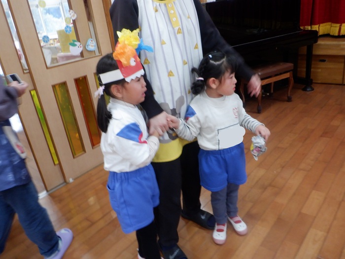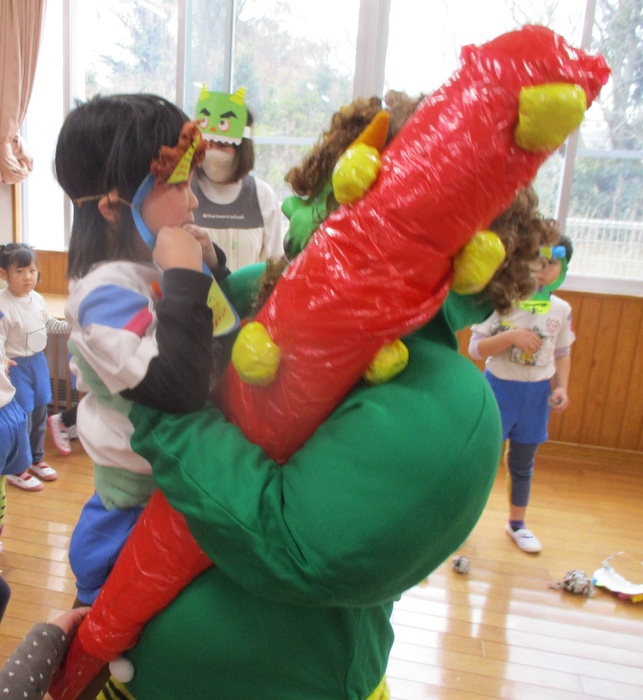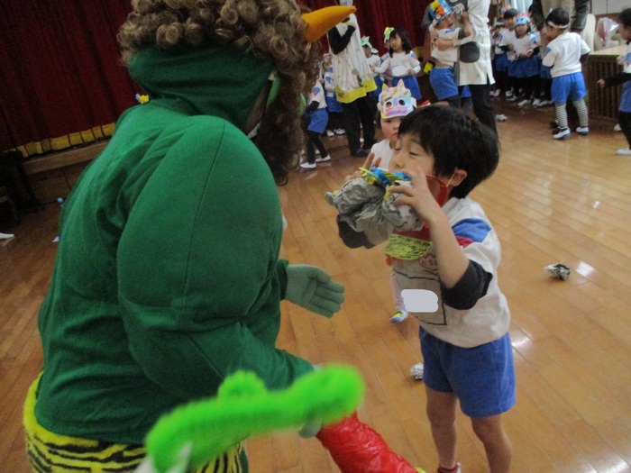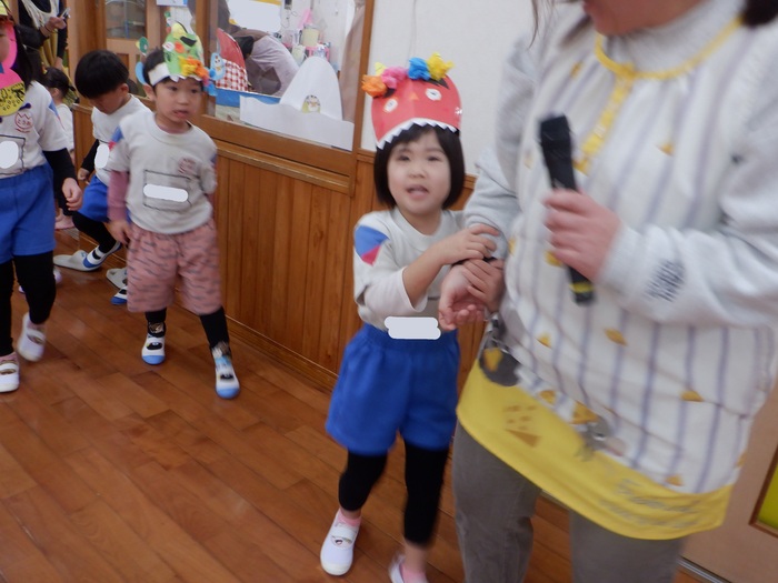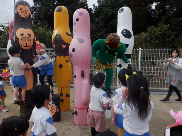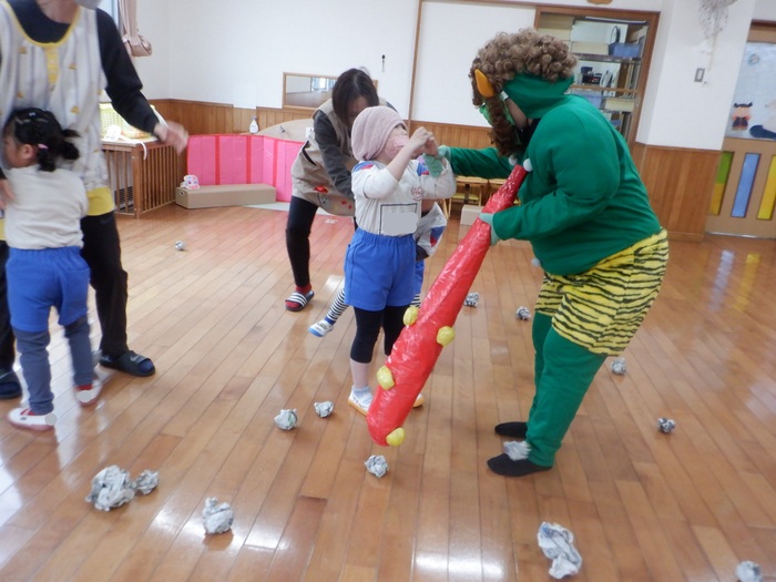 福の神さんがやってきて、みんなで「幸せなら手をたたこう」を歌いました♪