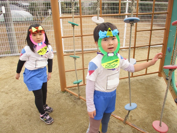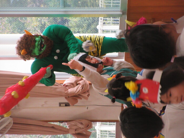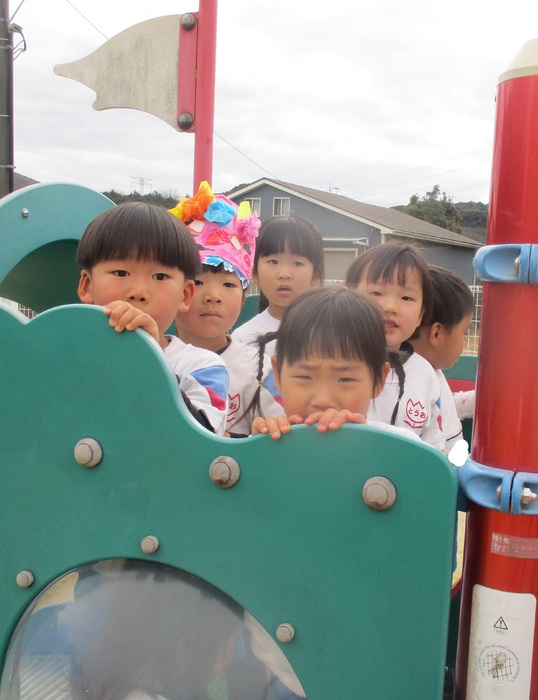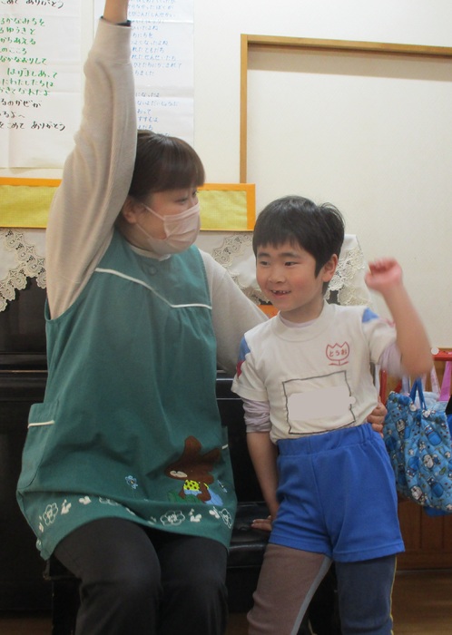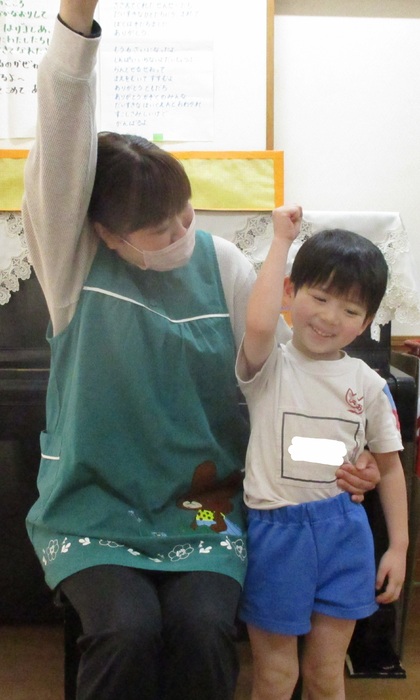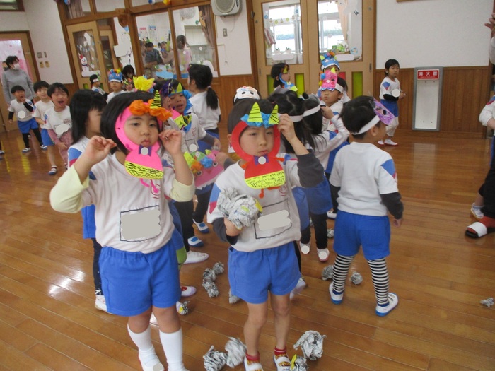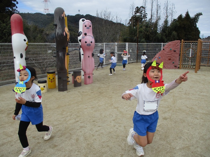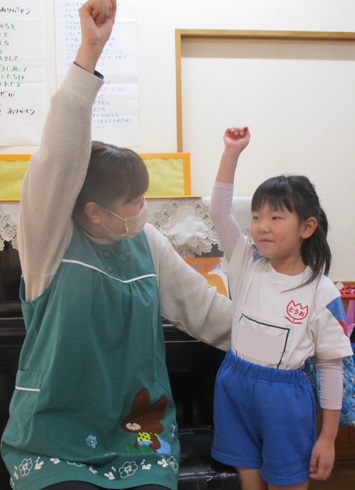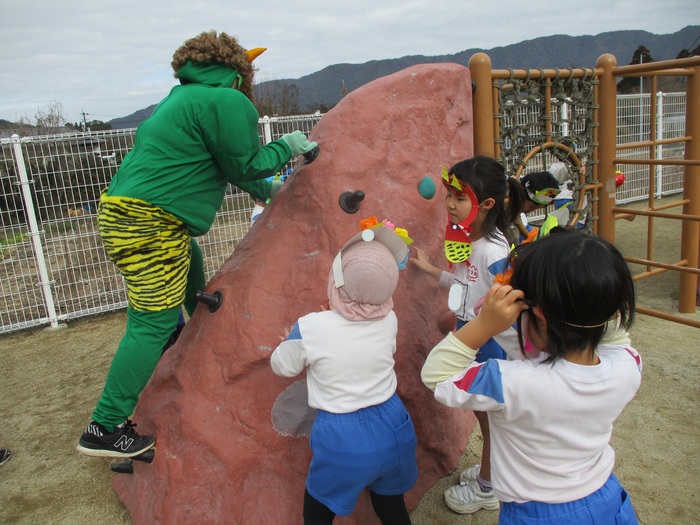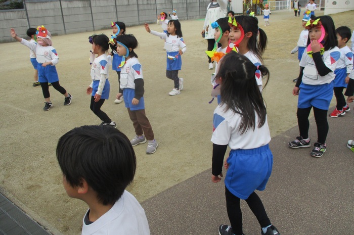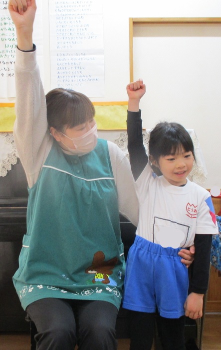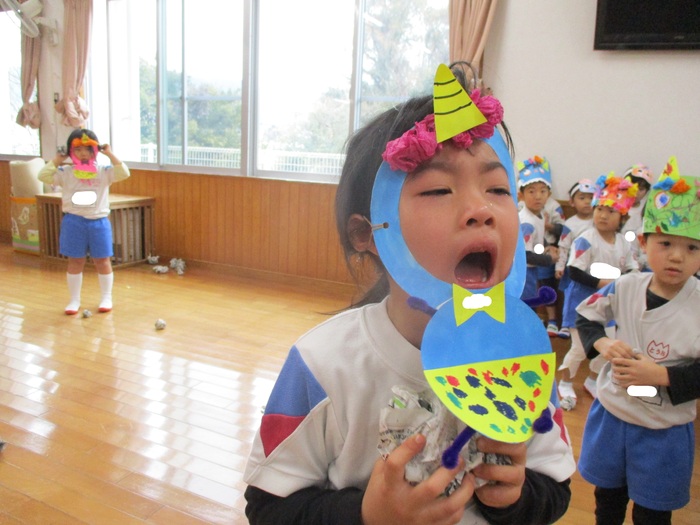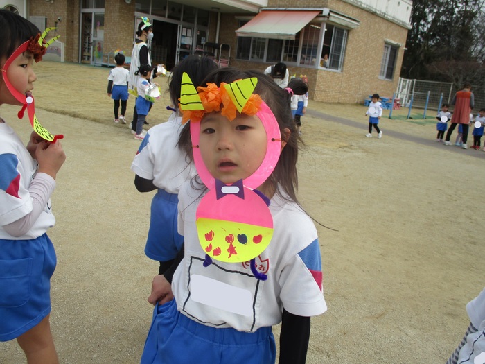 福の神さんがやってきて、みんなで「幸せなら手をたたこう」を歌いました♪