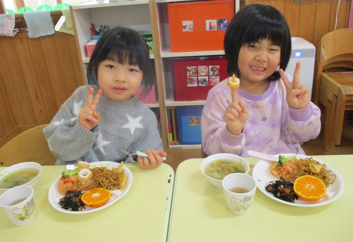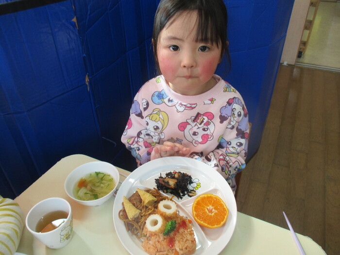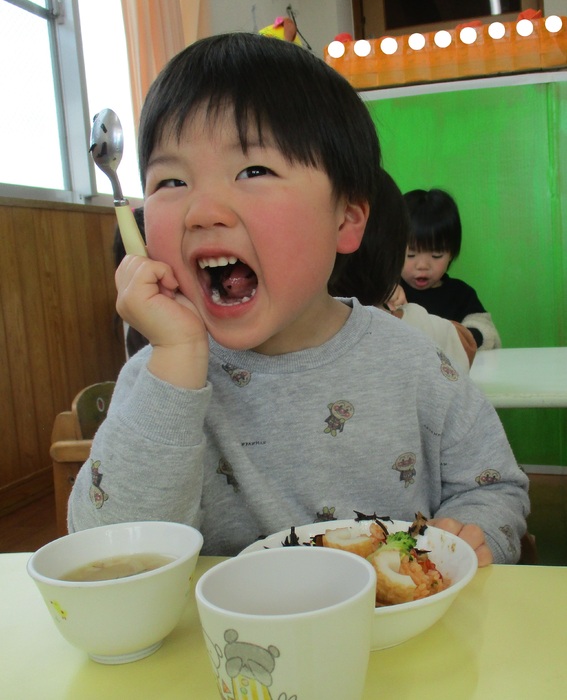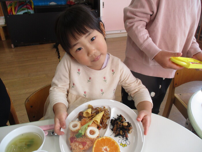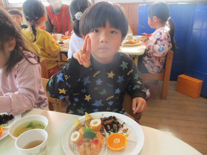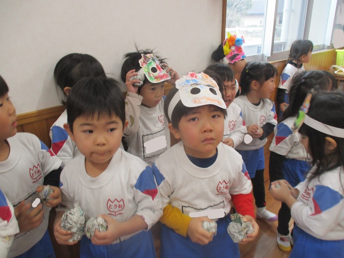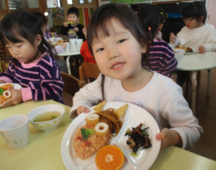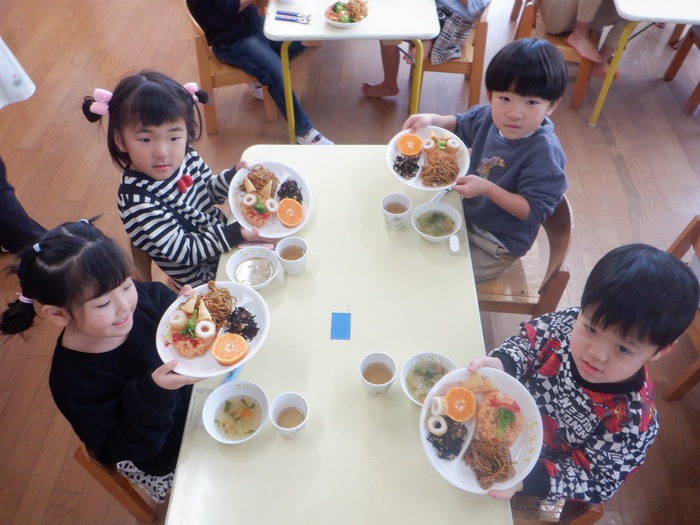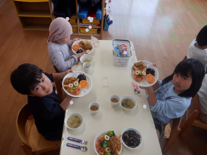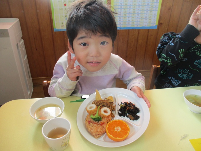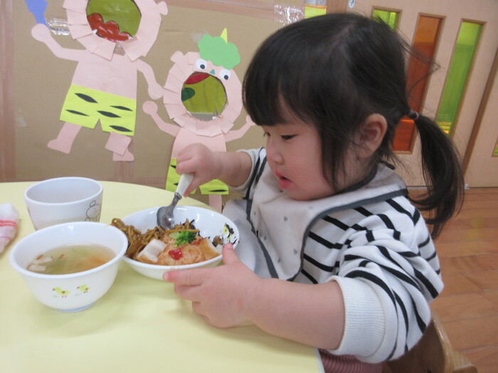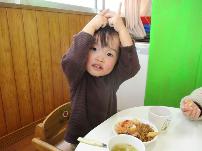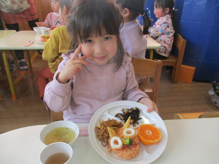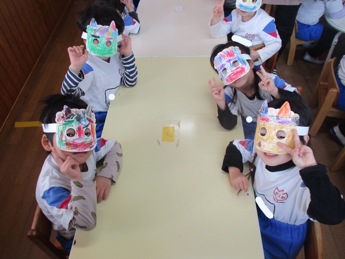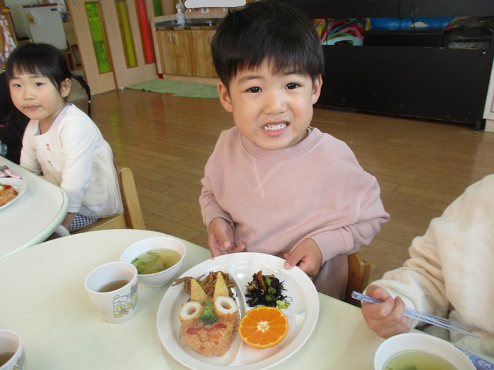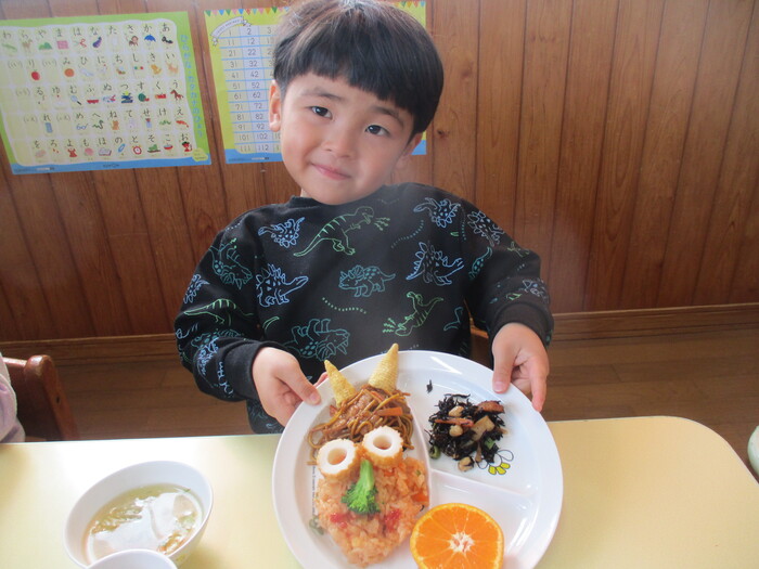 給食は鬼さんプレート!自分たちで目・鼻・角の飾りつけをしましたよ♡