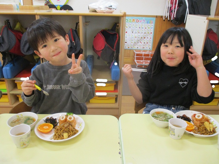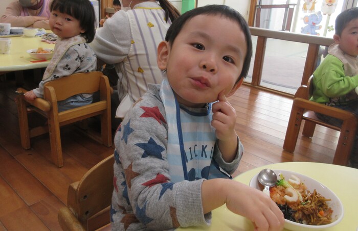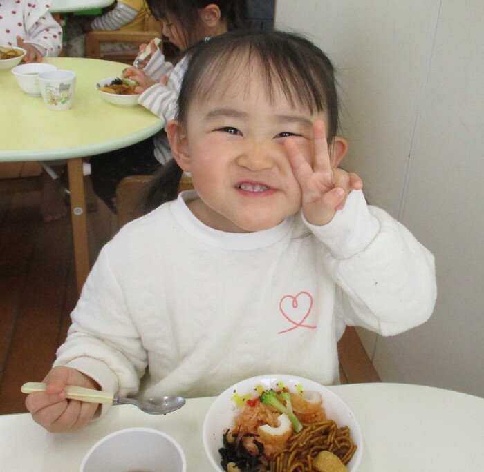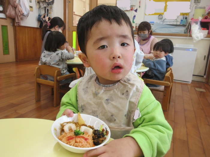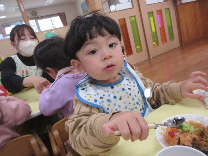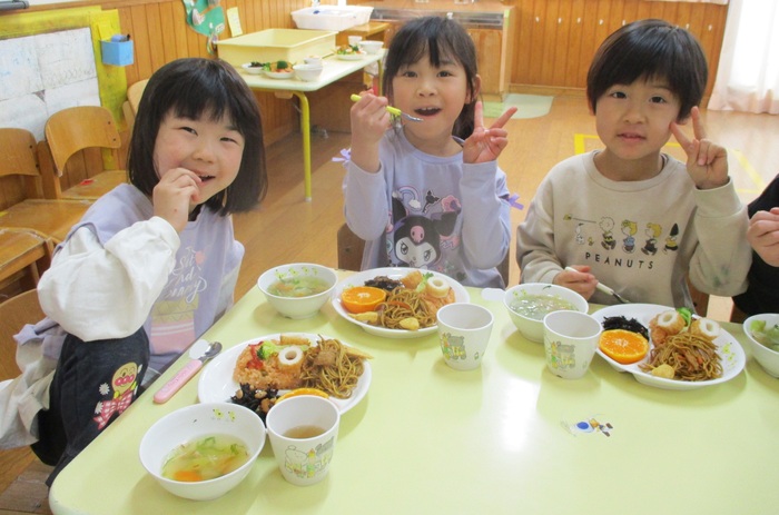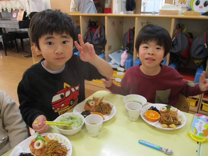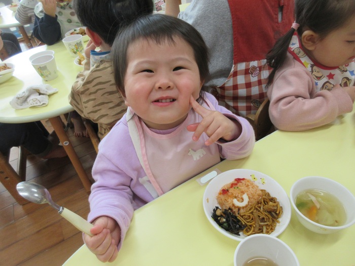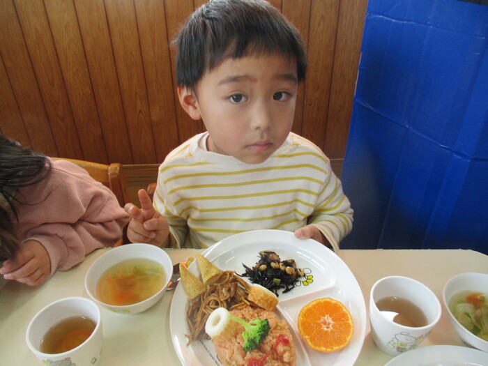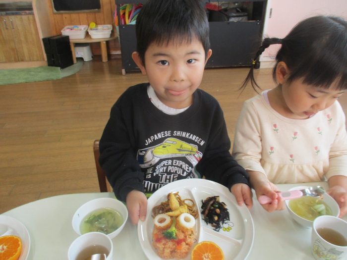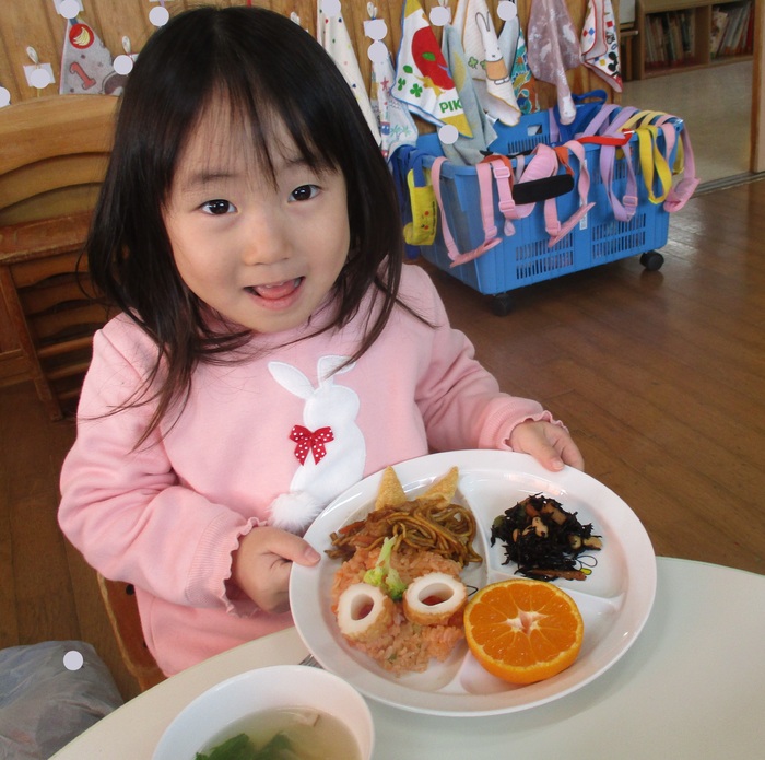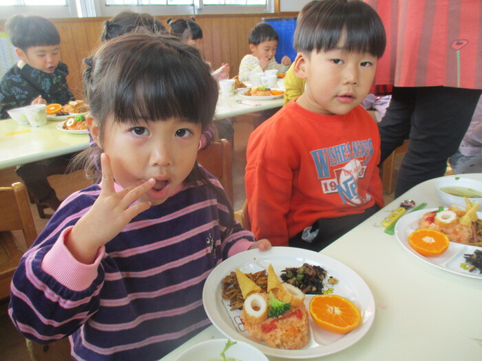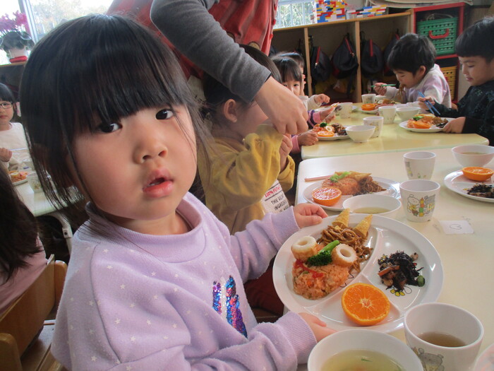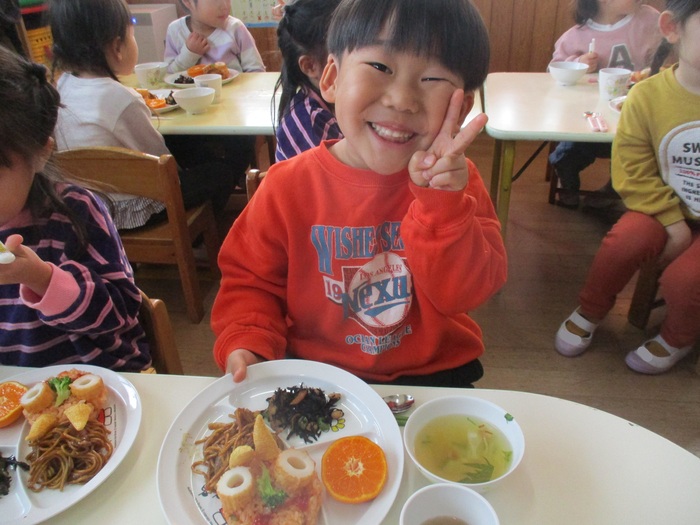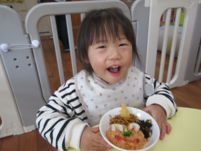 給食は鬼さんプレート!自分たちで目・鼻・角の飾りつけをしましたよ♡