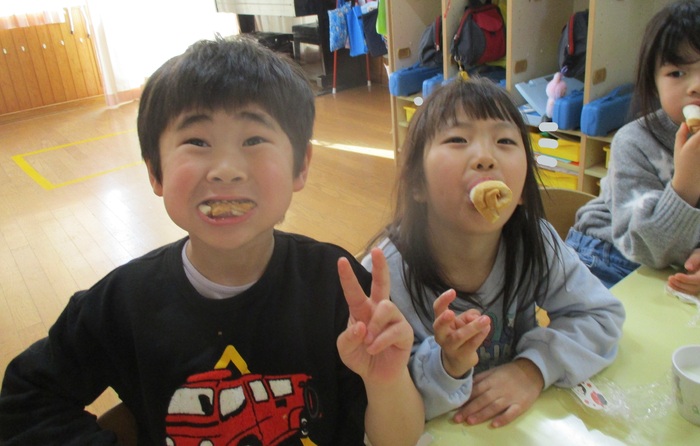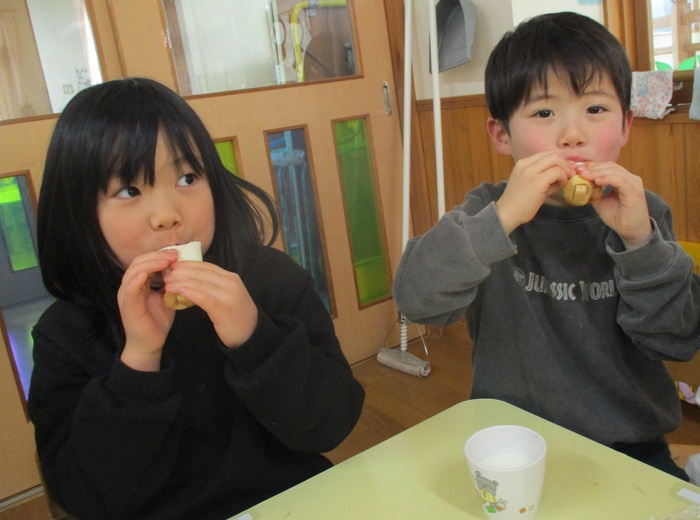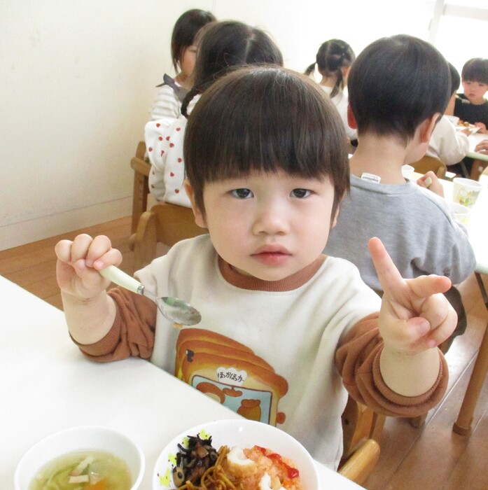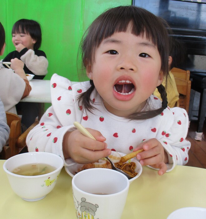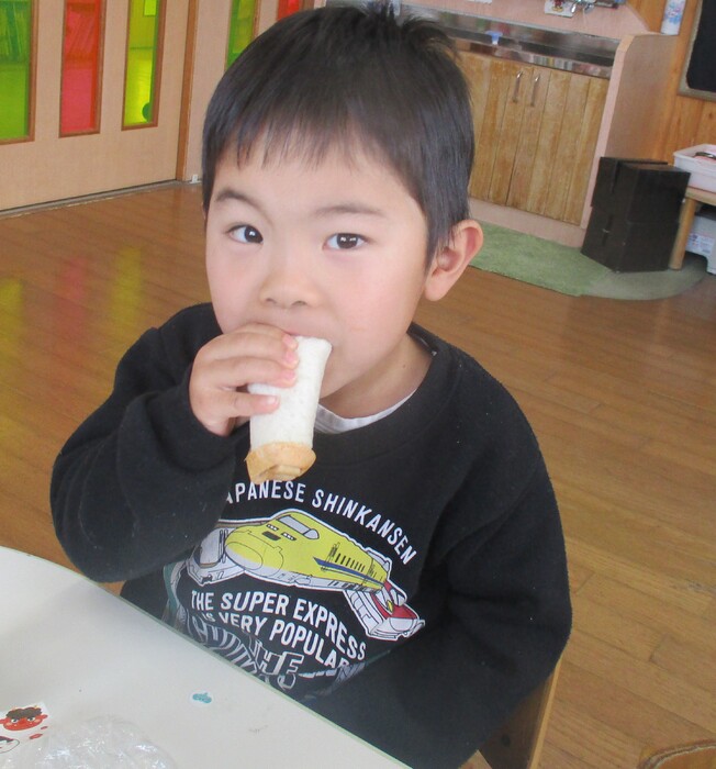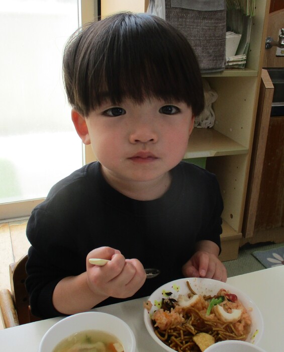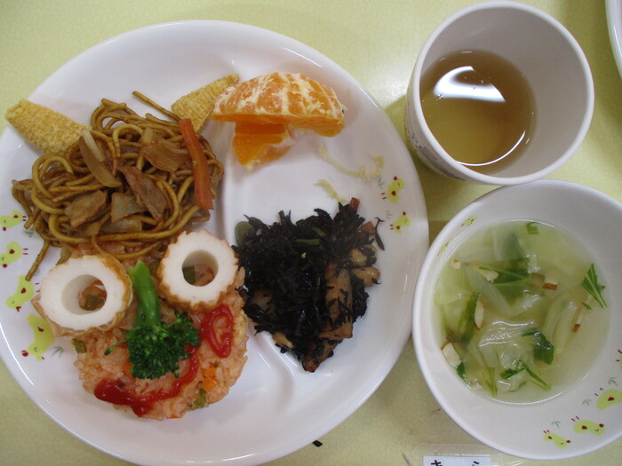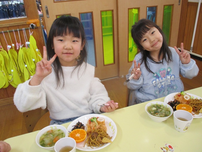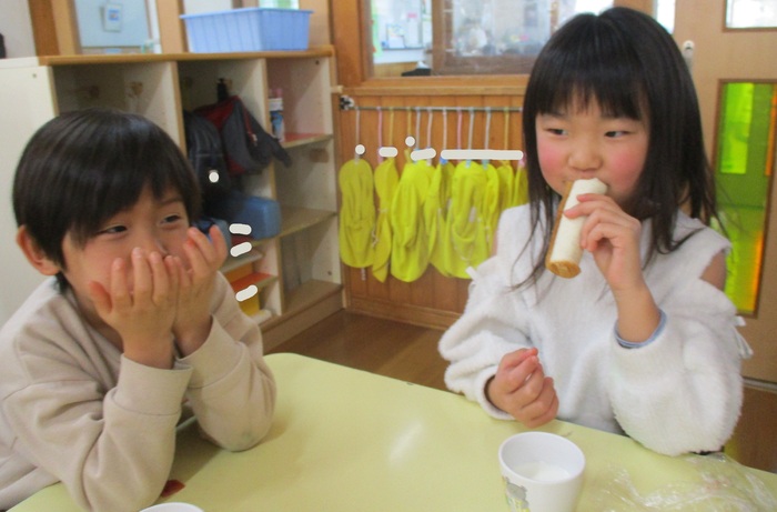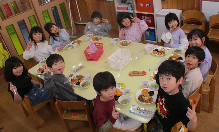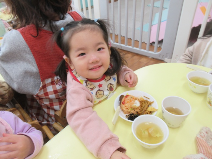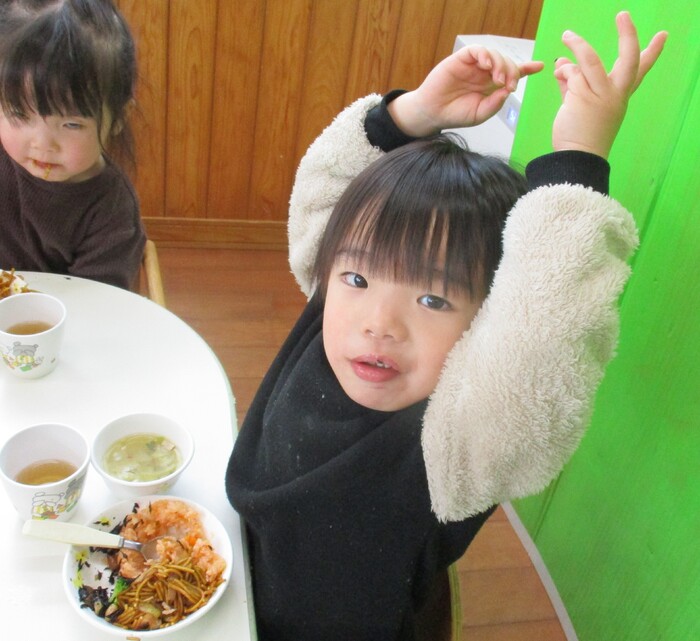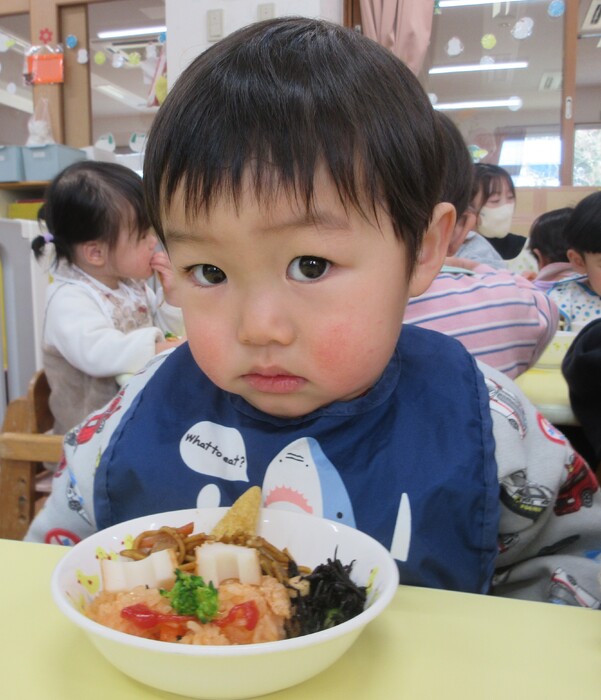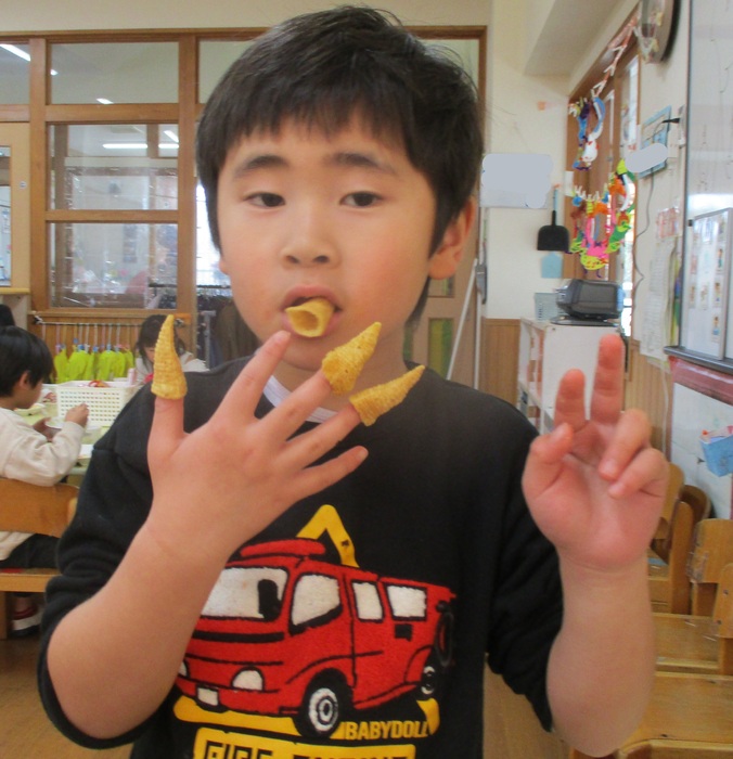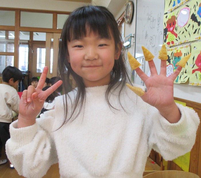 給食は鬼さんプレート!自分たちで目・鼻・角の飾りつけをしましたよ♡