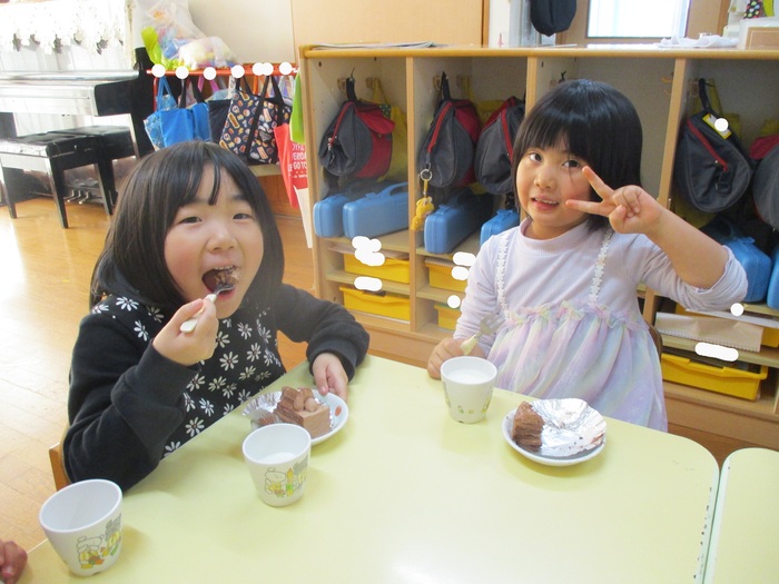おやつはみんな大好きチョコケーキ♡