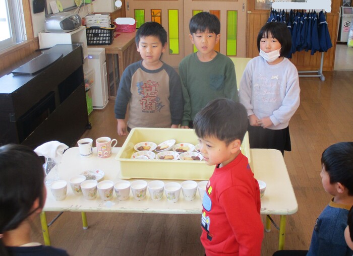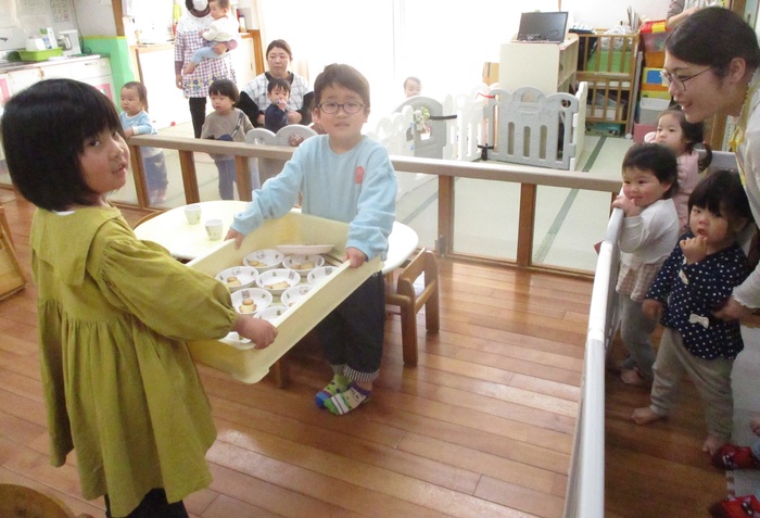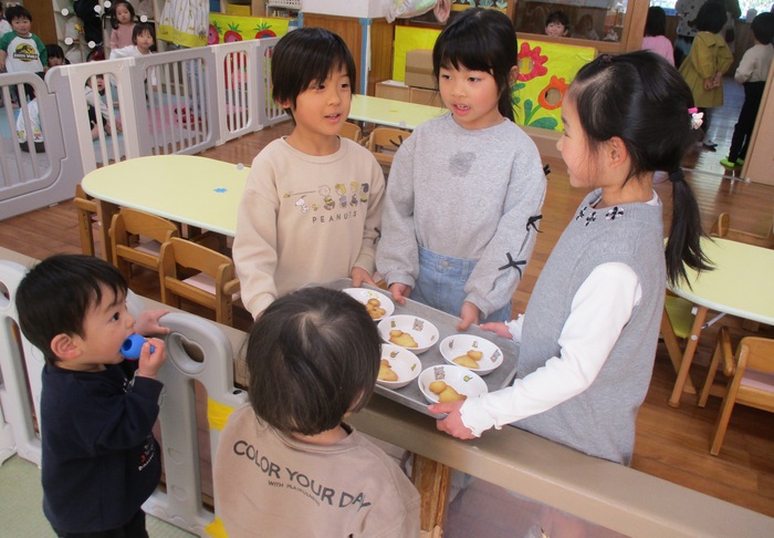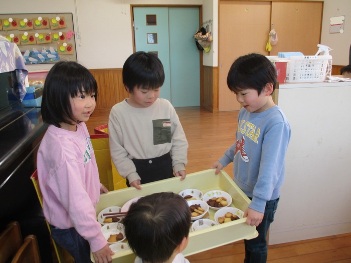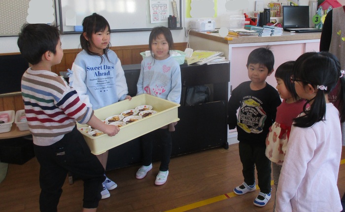 お礼の言葉を添えて、ぞう組さんから各クラスへクッキーを届けてくれました!
