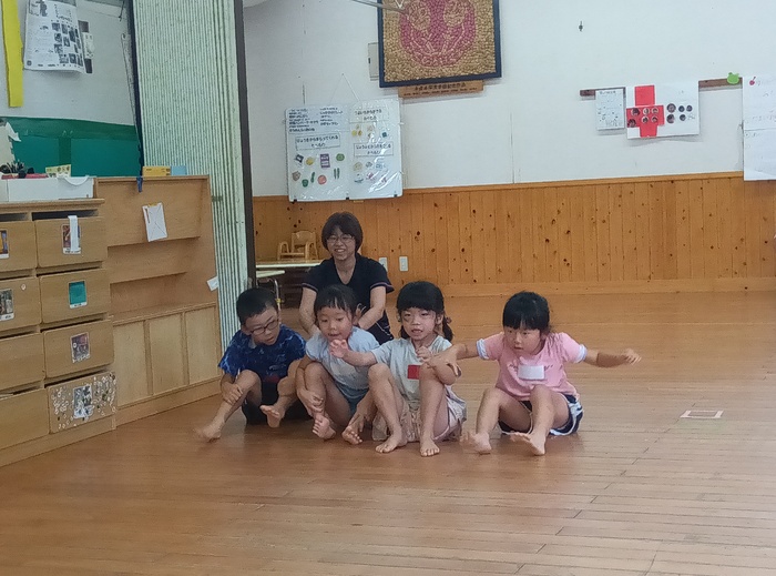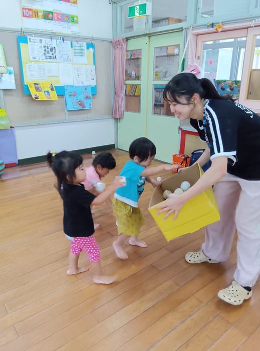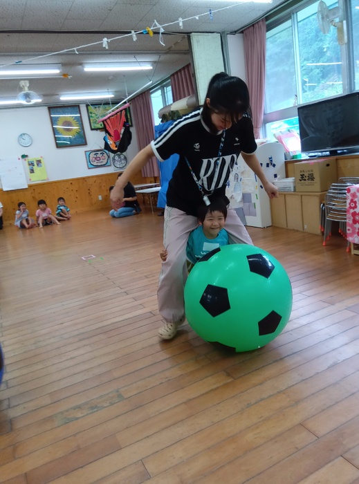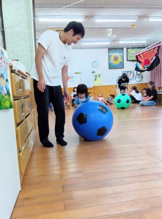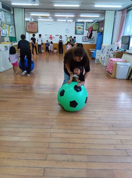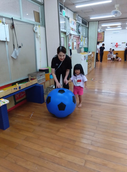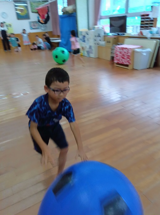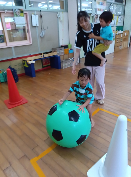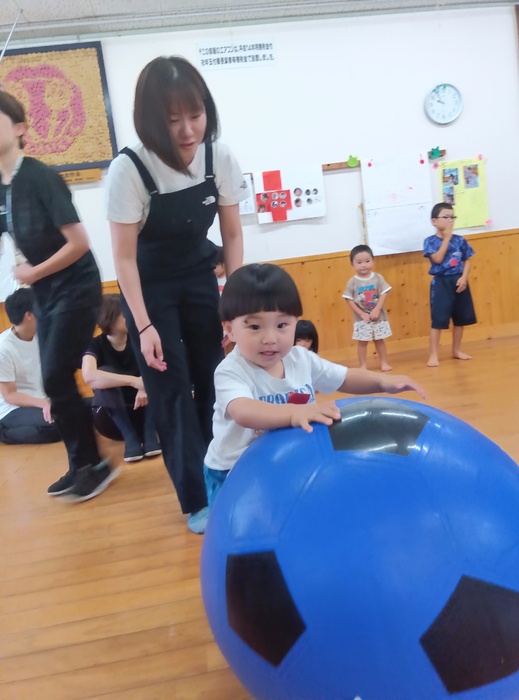 ~「おおたまころがし」の場面から~ 「自分の番が終わったからいいや」ではなく、 前のめりになるほど同じチームの友達を応援したり、 勝った後でも相手チームの応援をしたりする姿が見られました。 「応援してね!」「まだ終わってないよ!」と周りから声をかけられることやかけることもなく、こうして自然と友達を想う姿に感動し、嬉しく思いました。 この写真からとてもよく伝わりますよね🥰 | ||