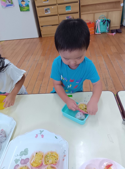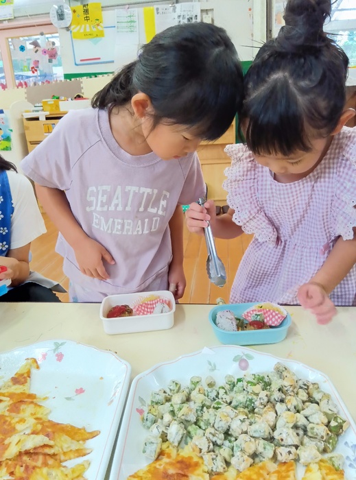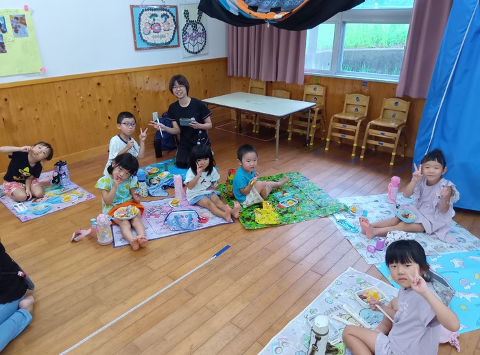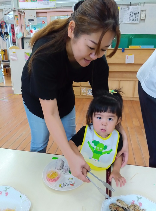 「食べた後もお母さん一緒に遊べるなんて最高!」と言っていたHくん。 家とはまた違い、保育園で一緒に過ごす時間は新鮮で、とても楽しかったようです🥰 周りの友達も肩たたきをしながら声をかけたり、何気ない話をしたりとふれあう姿が見られ、 こうした体験から、いろいろな人とかかわる喜びや楽しさを感じていくのだなと改めて思いました。 | ||