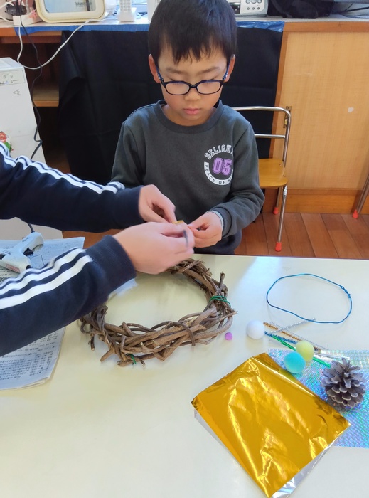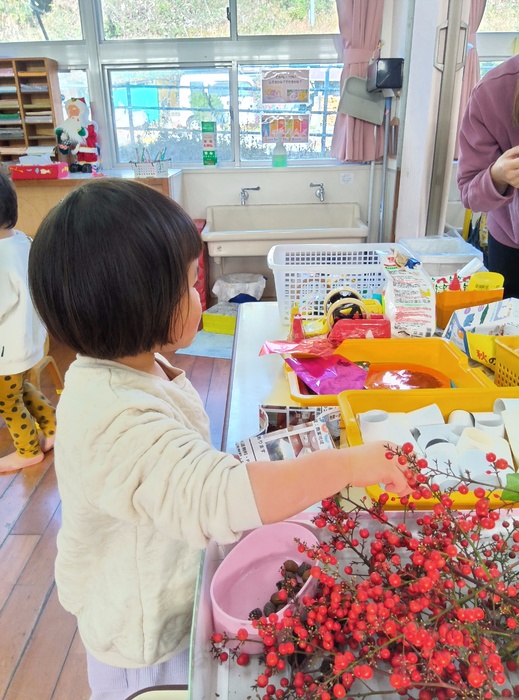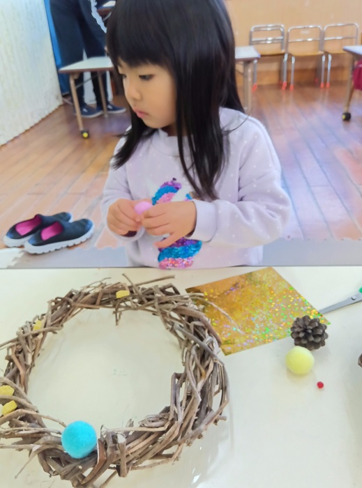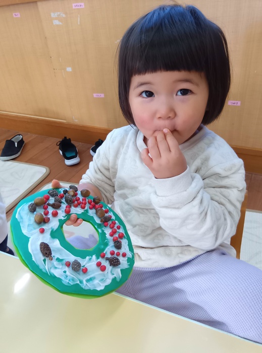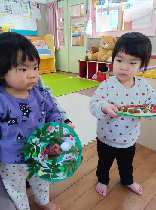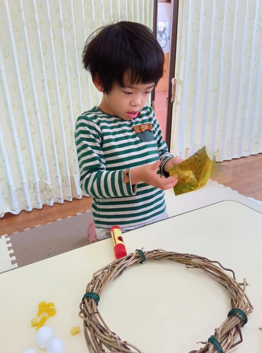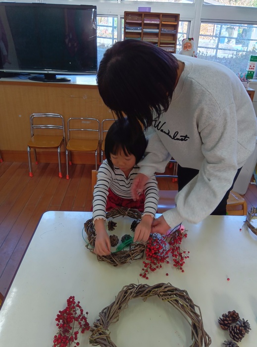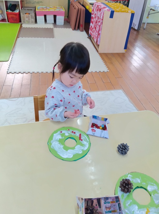 つくつくの日12月は・・・!? クリスマスリースを作りました🎄🎅✨ 今回は保育士体験で1名の方に来ていただき、 一緒にリースを作ったりお昼ご飯を食べたりしましたよ! | ||