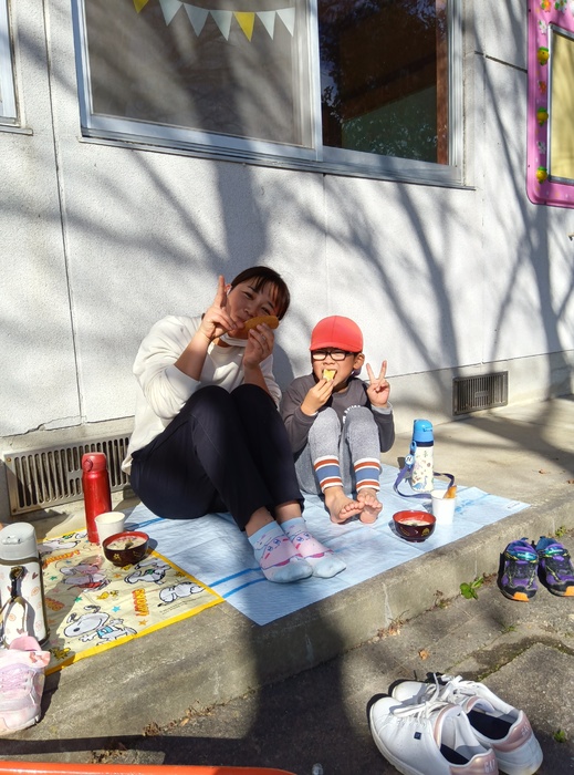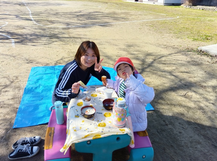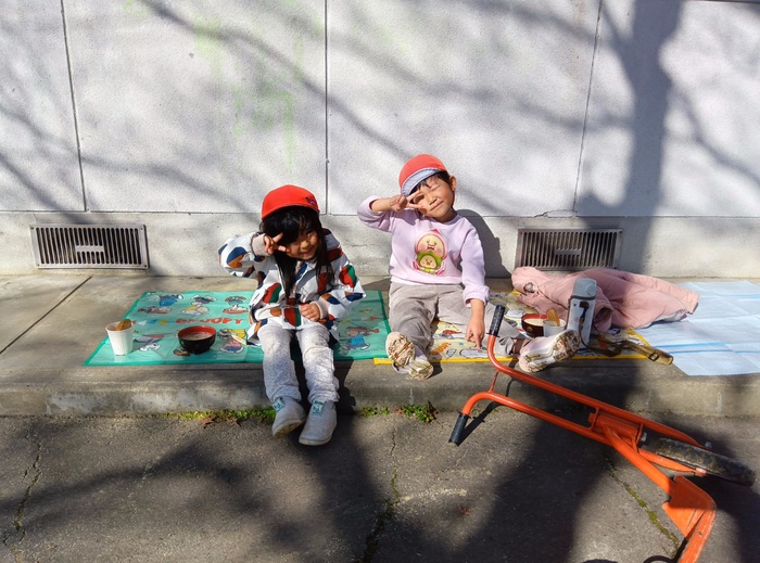 今回の青空ランチのメニューは・・・?💗 具だくさんクリームシチュー🍠🥕 トースト3種🍞✨ (ガーリックトースト・シュガートースト・明太子フランス) 友達や先生とわいわい🥰 モグモグ😋 いーっぱい食べました💗 | ||