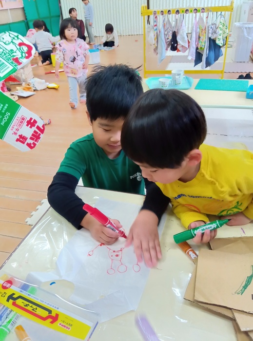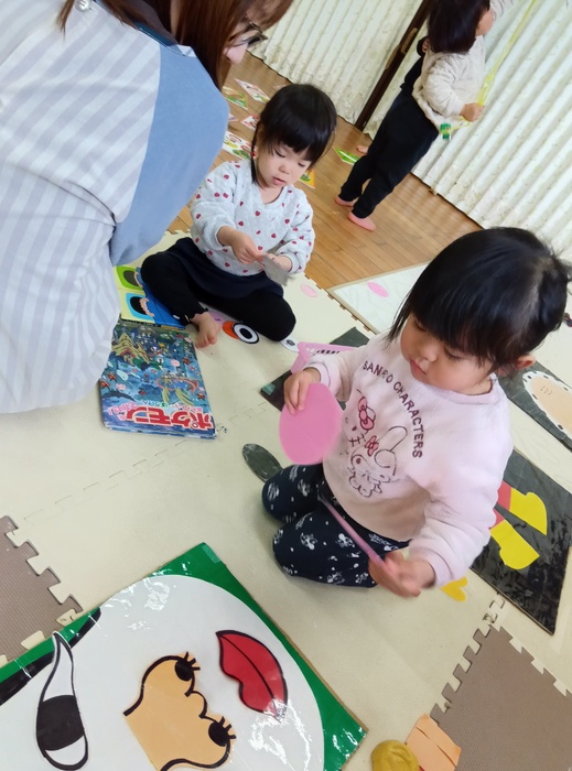 1月のつくつくの日は・・・!? 「お正月遊びをしよう!」でした。 凧やこま、福笑い・・・ いろいろなお正月遊びを楽しむ姿が見られましたよ😊 | ||
