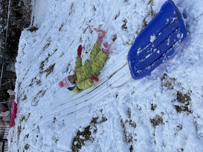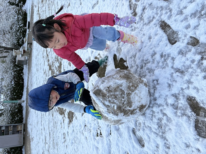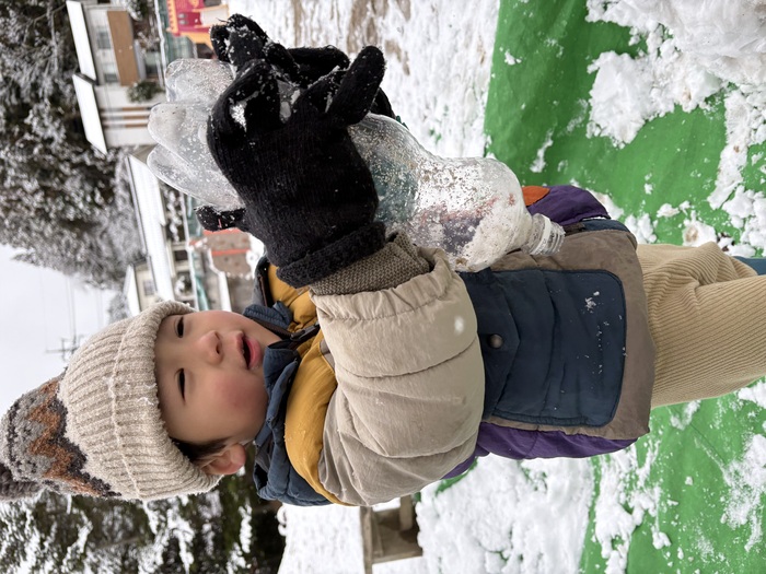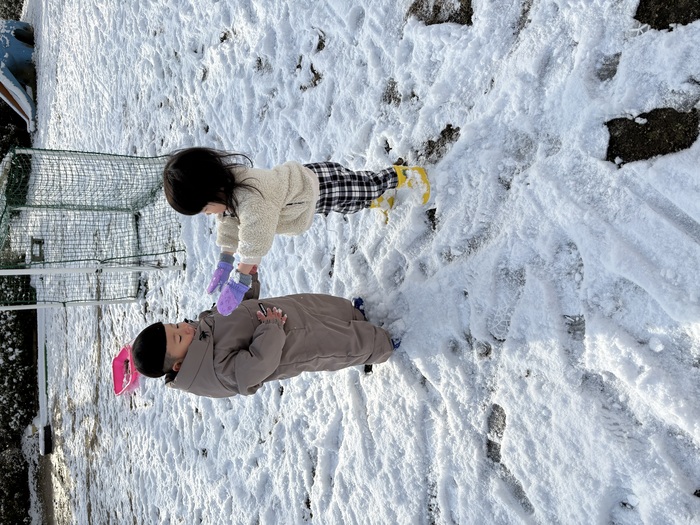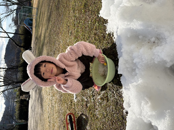 1月の様子です!! 子ども達お待ちかねの雪が積もりました~(^▽^)/寒い中でも元気に遊ぶつくしっ子の様子です♡ | ||