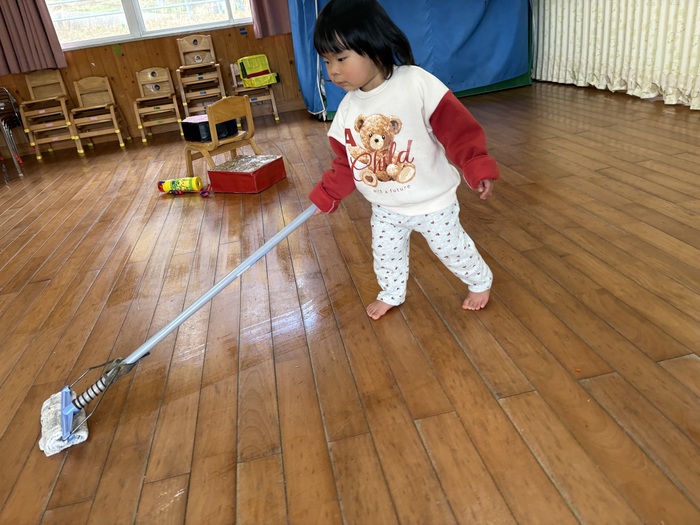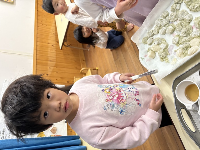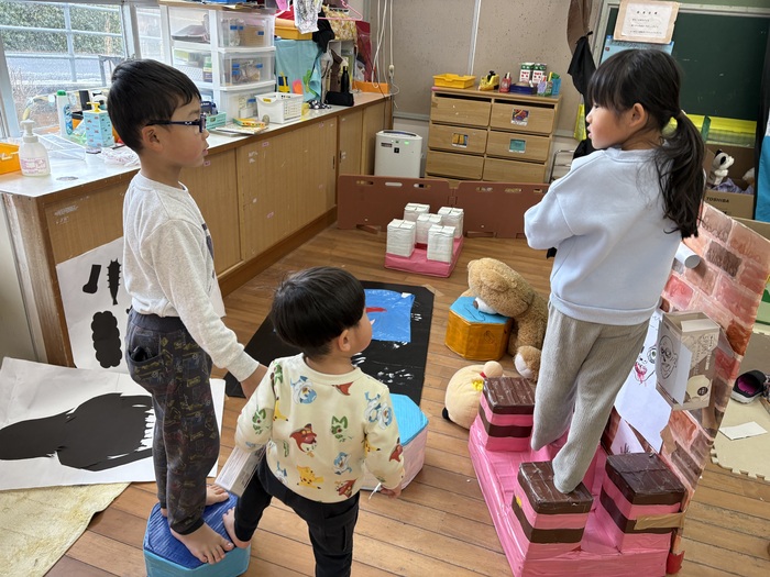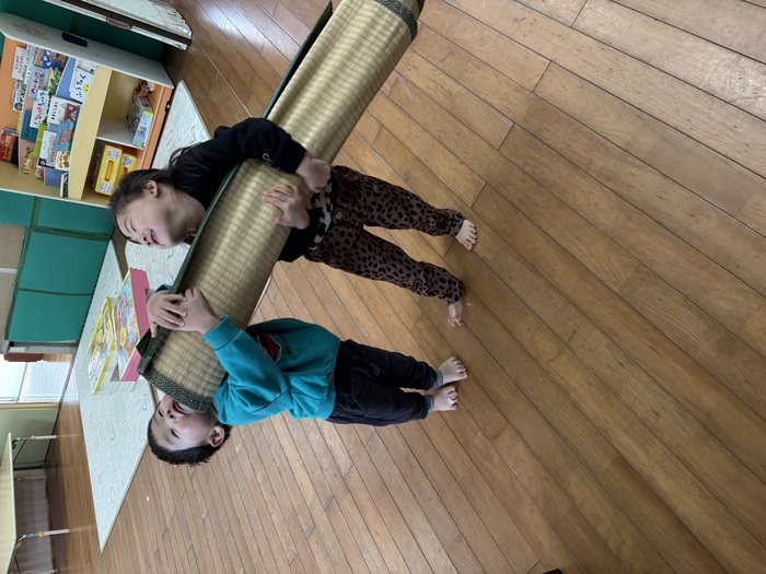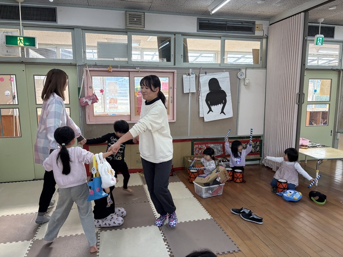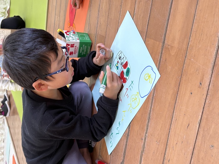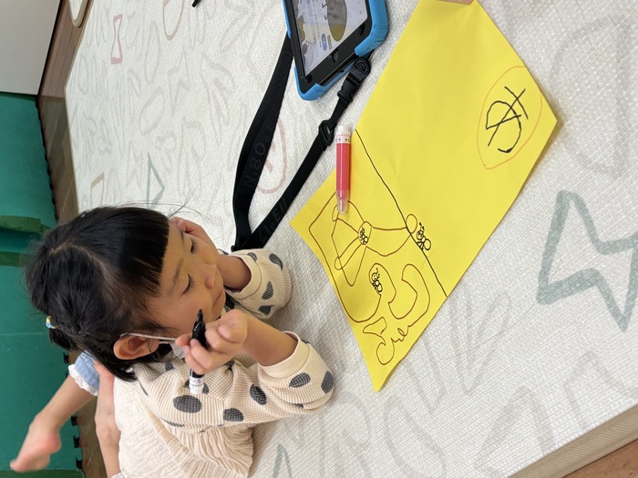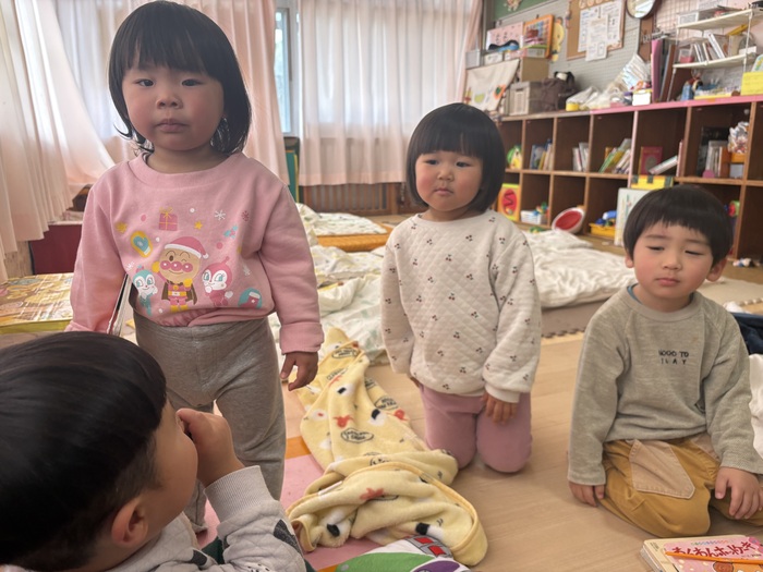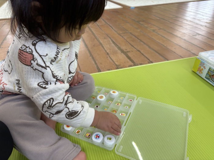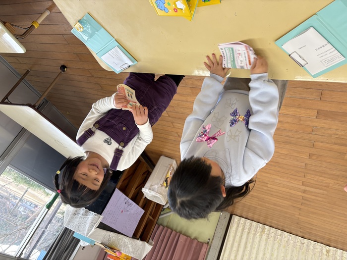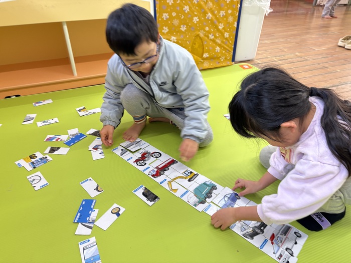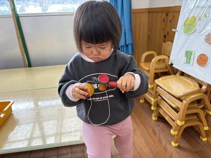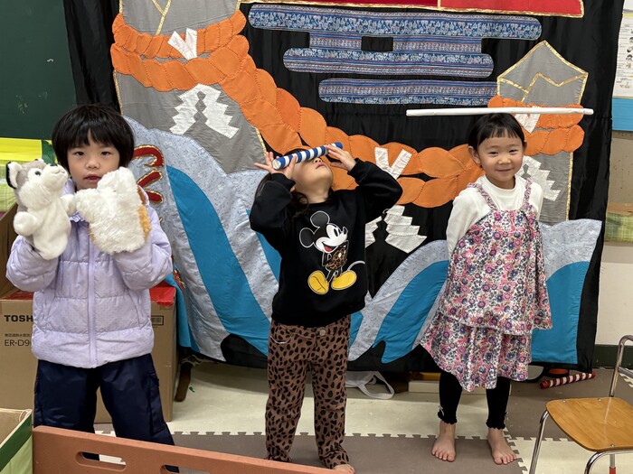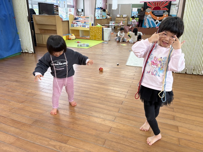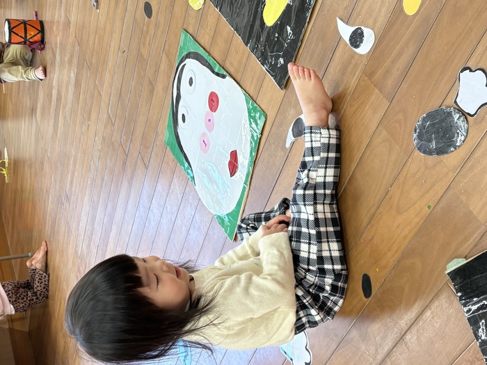 お正月遊び🌞 お正月ならではの、けん玉や福笑い、カルタなどに挑戦しました! あやめ・ふじ組さんは自分たちでオリジナルのカルタを作っていましたよ~!! | ||
