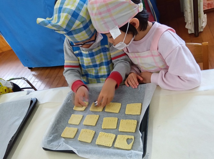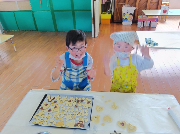 いろいろクッキーづくり ステンドグラスクッキーやキャラクターのクッキー、大きなクッキーなどをつくって食べました! | ||