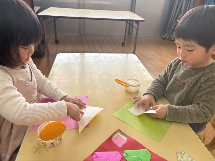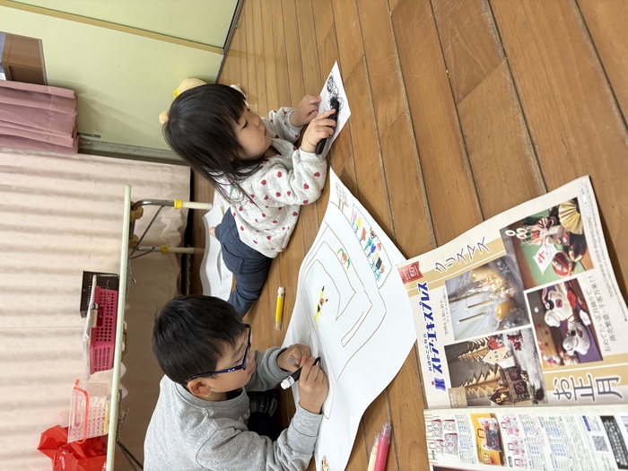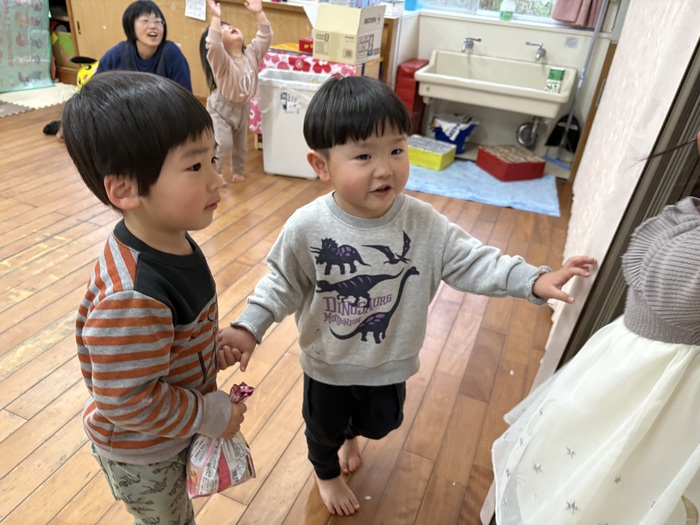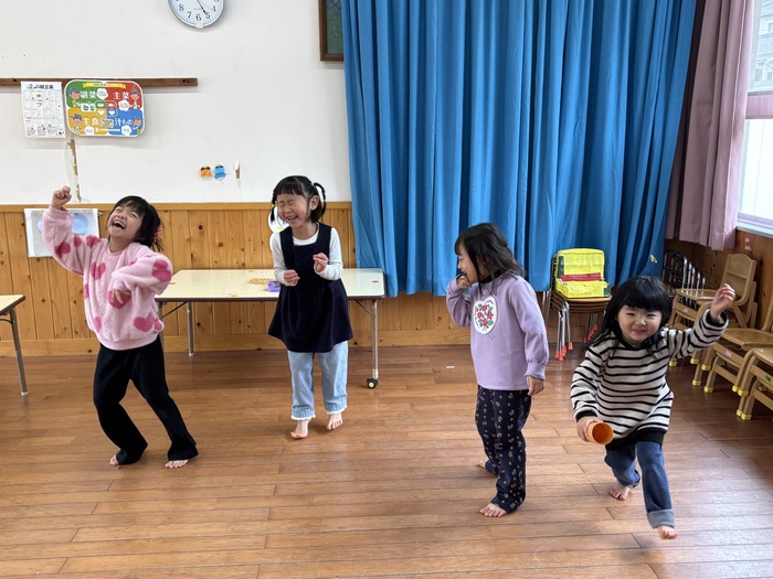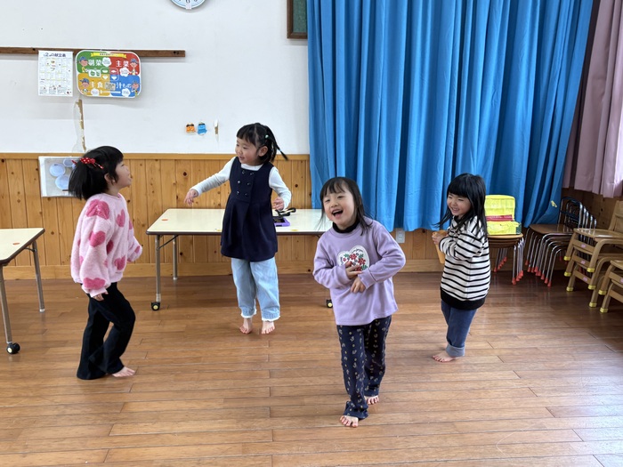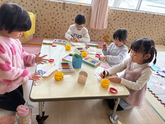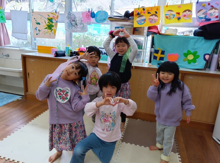 ~あやめ組さんのお楽しみタイム~ 就学に向けて午睡をなくして過ごすことを2月から始めました。 午睡の時間に何をしたいかみんなで言い合いながらカレンダーを作成! 散歩、探険、おにごっこ、つくりもの、おうちごっこ、絵本・・・ いろいろな遊びを通して5歳児さんだけで過ごす時間を楽しんでいます。 なんだか特別感があるようで朝からわくわく♡ お楽しみタイムはハイテンション😆!の子ども達です。 | ||