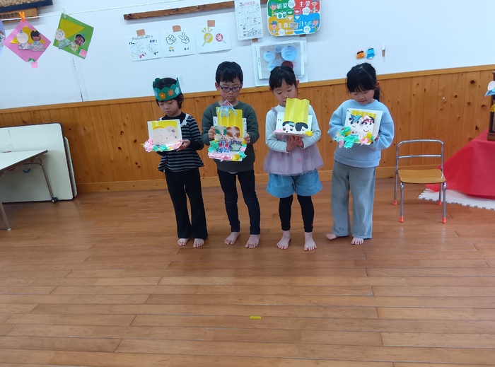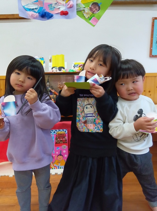 ~🎎ひな祭り製作を作ったよ!💗~ 各クラス、見てほしい所や頑張った所を先生や友達と発表しました✂✨ | ||