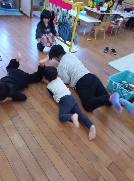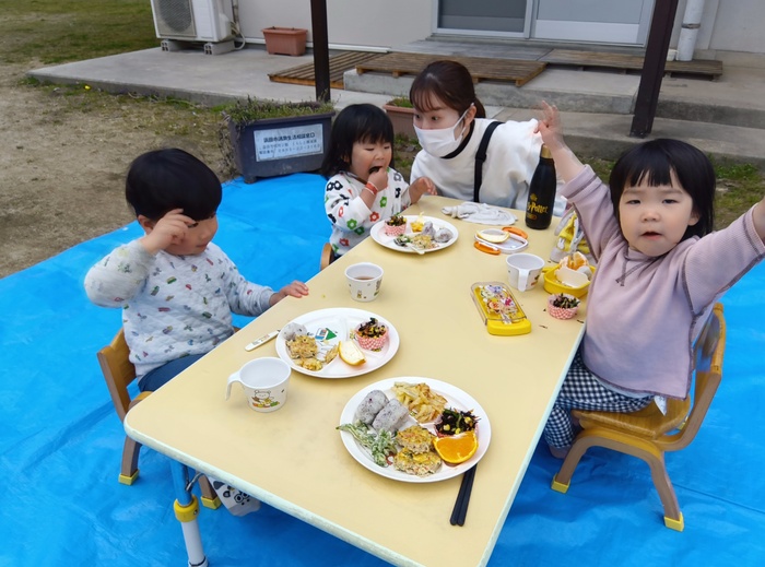 つくつくの日3月は・・・!? 「お花見」でした🌸 開花までもう一歩でしたが、室内や戸外で元気いっぱいに遊びましたよ🥰 感染症が流行した為、残念ながら人数を制限することとなりましたが・・・ 保育士体験で来られた方とふれあったり遊んだりとほのぼの過ごしました。 | ||