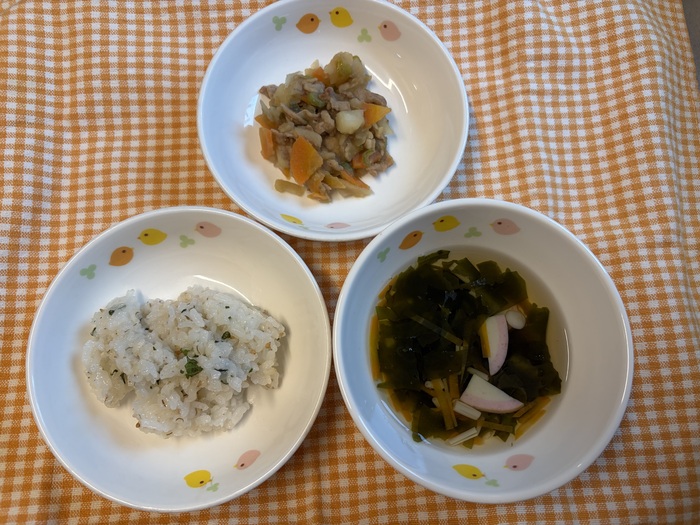 昼食 *魚の照り焼き *にんじんの甘煮 *ひじきの和風サラダ *清汁 *ごはん | ||