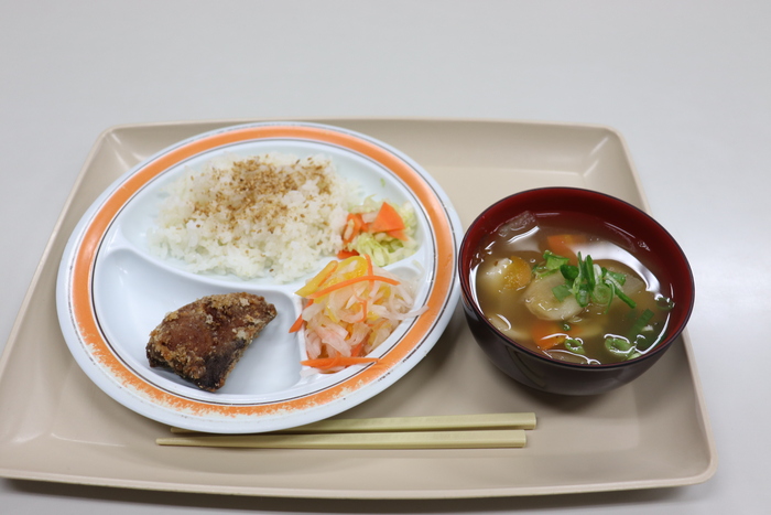 ・ぶりの竜田揚げ ・柿なます ・ごはん(ごましお) ・とうがん汁 ・つけもの | ||