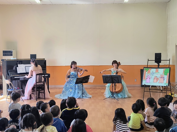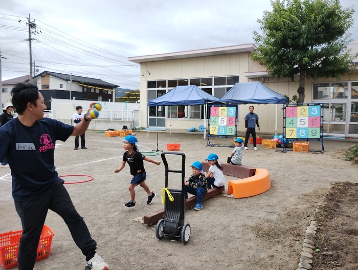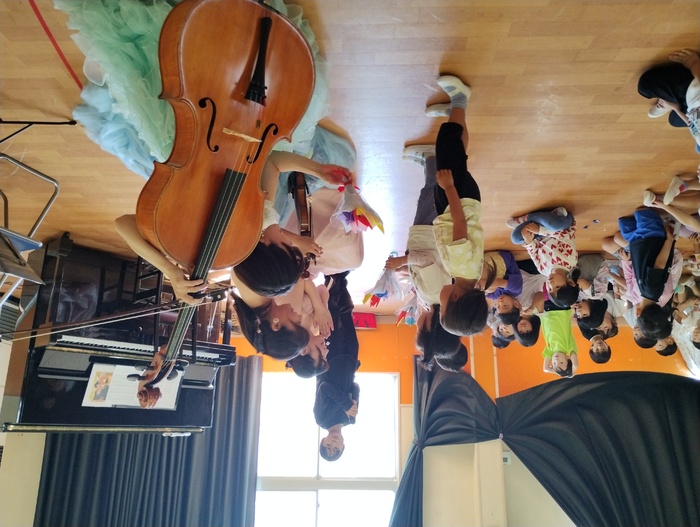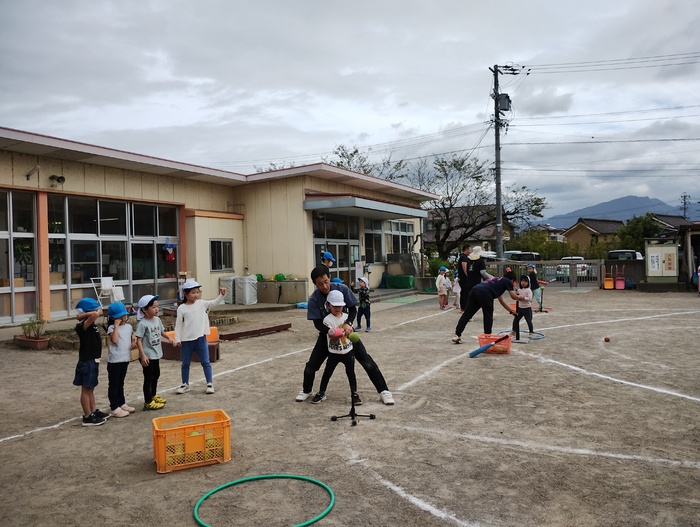 今年度の秋は 昨年もお願いしたヴォルーナトリオさん と 北信地区野球協会さん にお願いして、体験できるイベントを開催していただきました。 ヴォルーナトリオさんには紙芝居と共に演奏をしていただきました♪ 子ども達は明るい曲なら笑顔で、少し怖い場面では真剣な表情で聞き入っていました。 本物に触れてほしいというヴォルーナトリオさんの思いの通り、バイオリン・チェロ・ピアノの生の音を子どもたちに届けてもらいました★ また、子どもたちの野球への興味が夏ごろから出始めたことがきっかけに野球協会の方に野球教室をお願いしました⚾ 内容はストラックアウトやバッティングなど子ども達が楽しめる内容のものを用意していただきました★ これからも子どもたちの興味関心が持てるように様々な活動を取り入れて、いきたいと思います! | ||