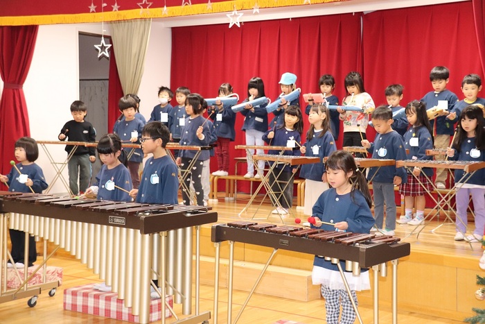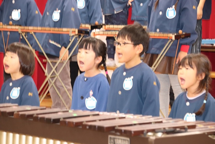 お友だちからのプレゼントも、やっぱり今日は特別バージョン! 生活発表会での合奏を、各学年がもう一度披露してくれました。 緊張がなかったのか、生活発表会の時とは違って伸びやかでしたね!(笑) | ||