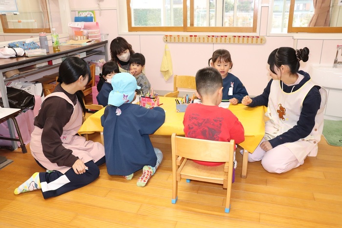<12月 1日(月)「保育参観~0、1歳」> 今日は保育参観。 日頃の保育の様子、お子様の様子をお家の人に見ていただきます。 | ||