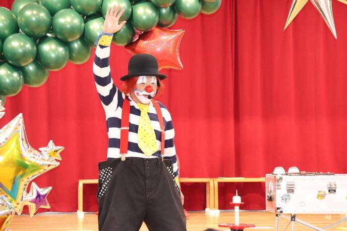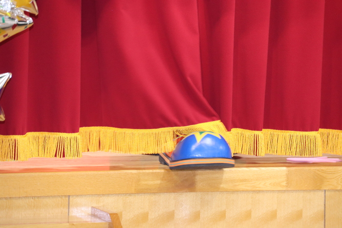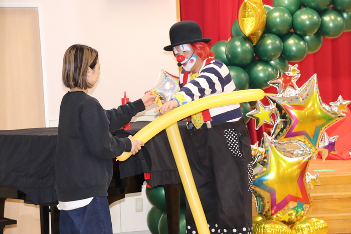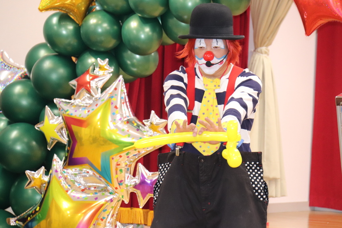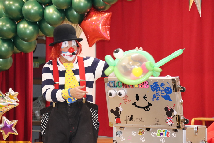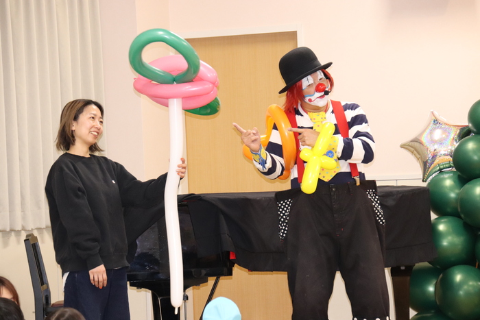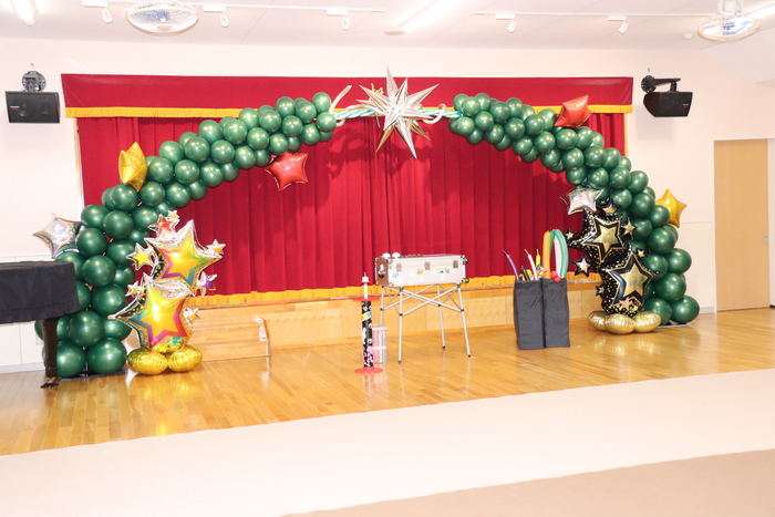 < 1月22日(金)「バルーンアート」> この舞台飾りは・・・そう、バルーンアートです!! | ||