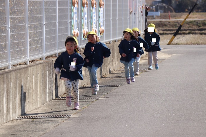 コースは3学年とも「おうちコース」。 最初のレースはさくら組さん。 勢いよく飛び出して・・・全員完走。 最後までがんばりましたよ! | ||