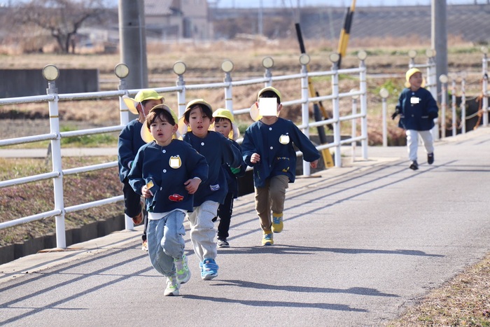 れんげ組さんだって走ります。 園庭をぐるぐると! | ||