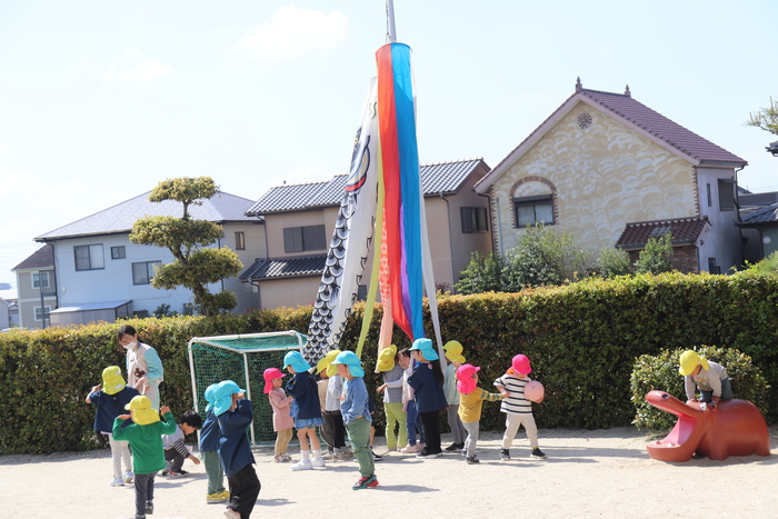 <4月15日(水)「こいのぼり&つばめ」> 保育園は季節を先取りしています。 園庭にこいのぼりが! お友だちは大喜びです。(笑) | ||