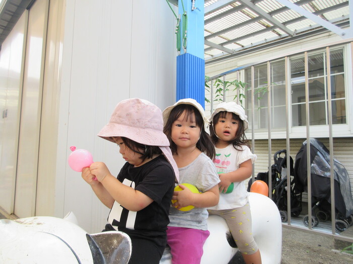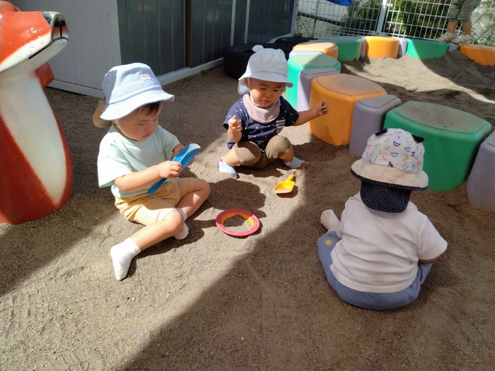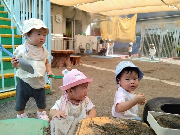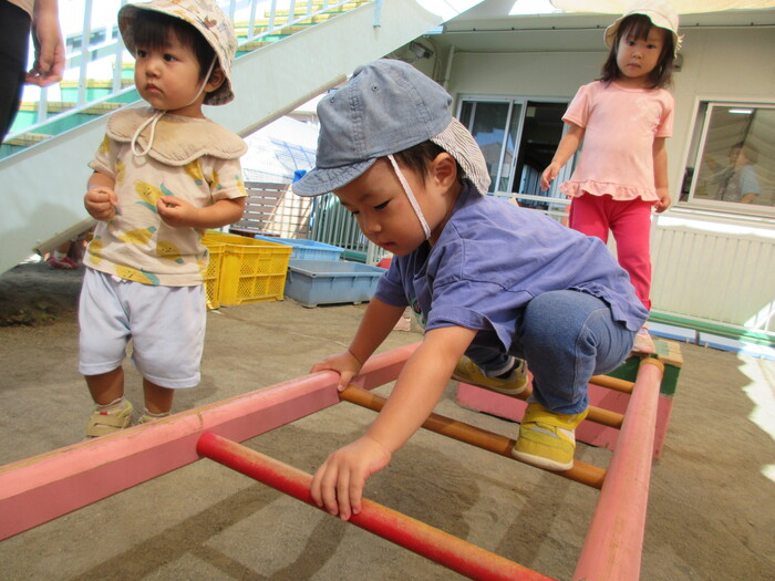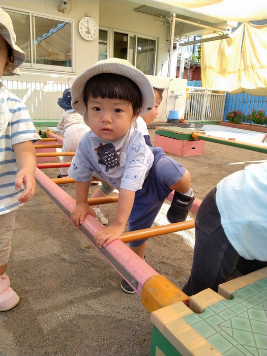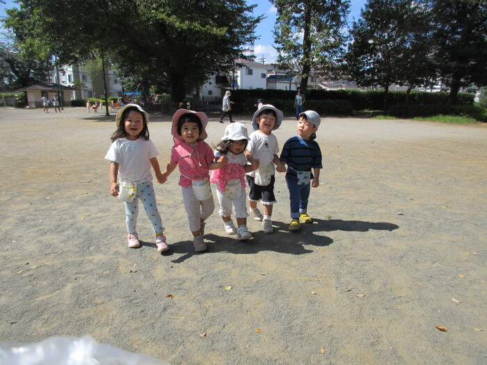 暑さが和らぐこともなく、あっという間に9月も終わりを迎えました。 今年の夏は水に触れる機会も多く、見たり触れたりと沢山の経験を 通して色々なことを感じたことでしょう。 涼しくなってくると、散歩にも出かけます。秋ならではの自然を感じ 身体を十分に動かして楽しんでいきたいと思います。 季節の変わり目で体調も崩しやすくなるので気を付けていきたいですね。 | ||