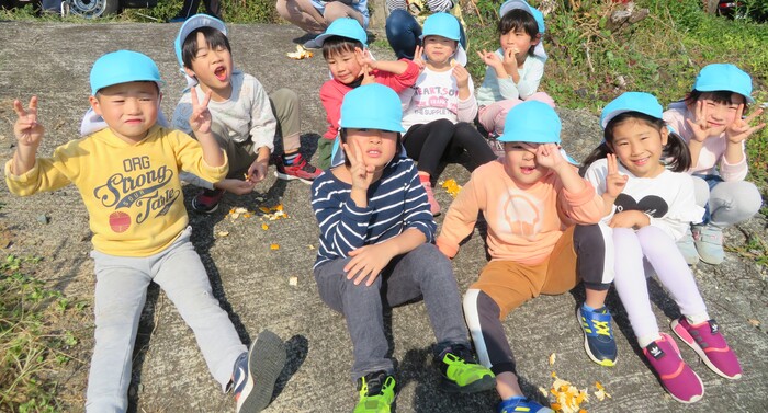 みかん山で食べる みかんの味は サイコーにおいしかった そうです。 | ||