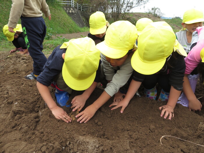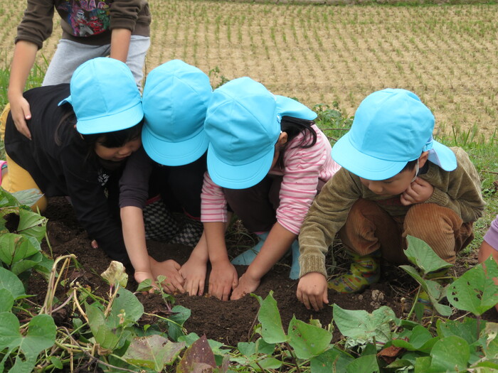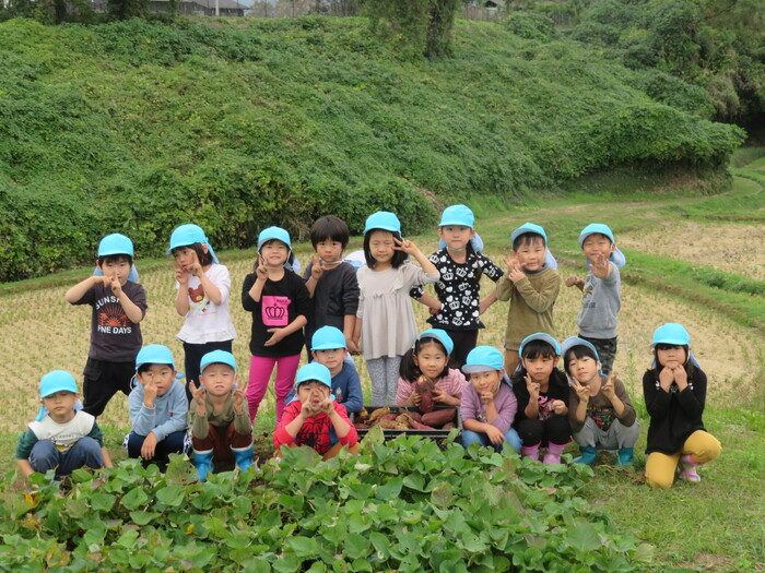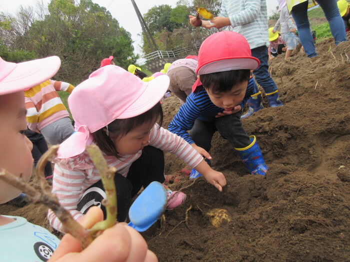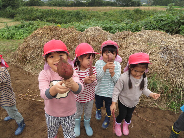 ♪うんとこしょ どっこいしょ みんなで芋掘りしました。 掘ったお芋で作ってもらった お芋のてんぷらやふかし芋 サツマイモサラダ・・・ どれもおいしかったです。♩ | ||