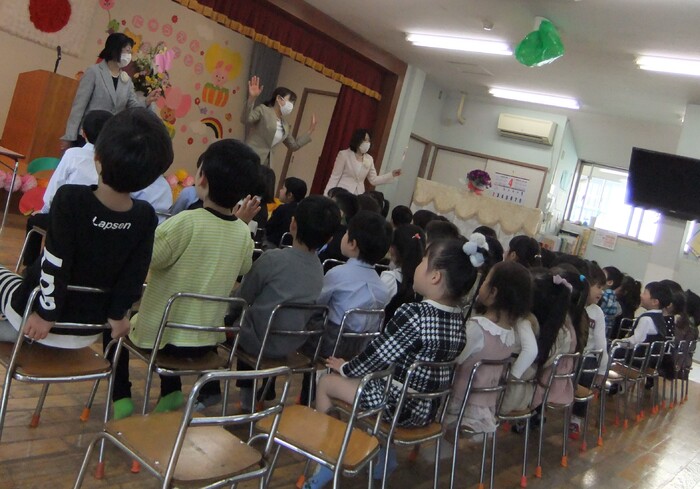 3年間、コロナ禍で新入園児 のみの入園式でしたが、 今年は 以上児3クラス参加での 入園式ができました。 | ||