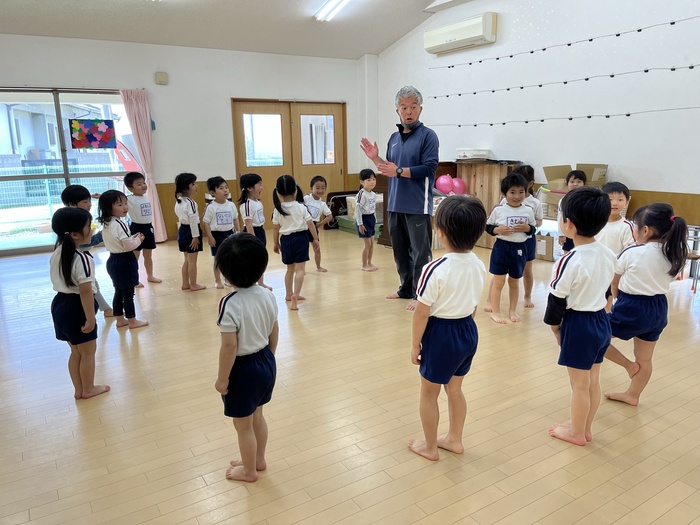 新ひまわり組(年中児) にとっては、 3歳児の頃から 憧れていた体育教室に 今年から参加できます。 先生の話をよく聞いて いっぱい体を動かして 体作りをがんばろう | ||