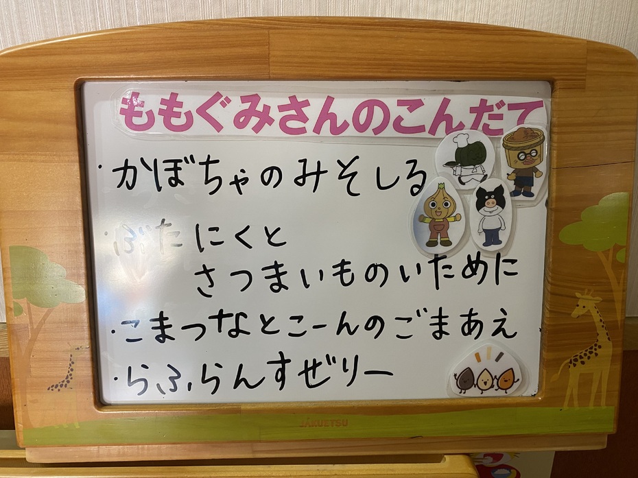 秋の代表的な野菜、かぼちゃやさつまいもを使った献立でした。子どもたちに感想を聞いてみてください!