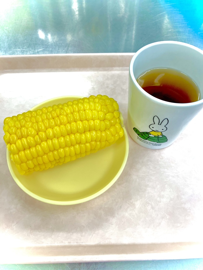 午後のおやつは年長さんに剥いてもらった「とうもろこし」と麦茶です!とっても甘〜いとうもろこしでした( ˊ̱˂˃ˋ̱ )