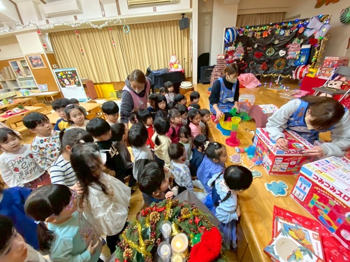 クリスマスプレゼントもたくさんもらったよ(*^^*) みんなで遊ぶためには? どんな風に遊ぶとみんな楽しいかな? 順番・交代・一緒に・・・ 子どもたち同士であそびの約束・ルールを決めた一日です。 | ||