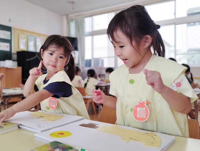 年少組は秋の造形に取り組んでいました。 折り紙でキツネを折って台紙に貼り 「お月見をするキツネ」を表現しました🦊 楽しそうなキツネと、それを見守るお月さまの顔もニコニコ笑顔で ホッコリした気持ちになりました(*^-^*) 今年の十五夜(中秋の名月)は10/6(月)だそうです🌕 | ||